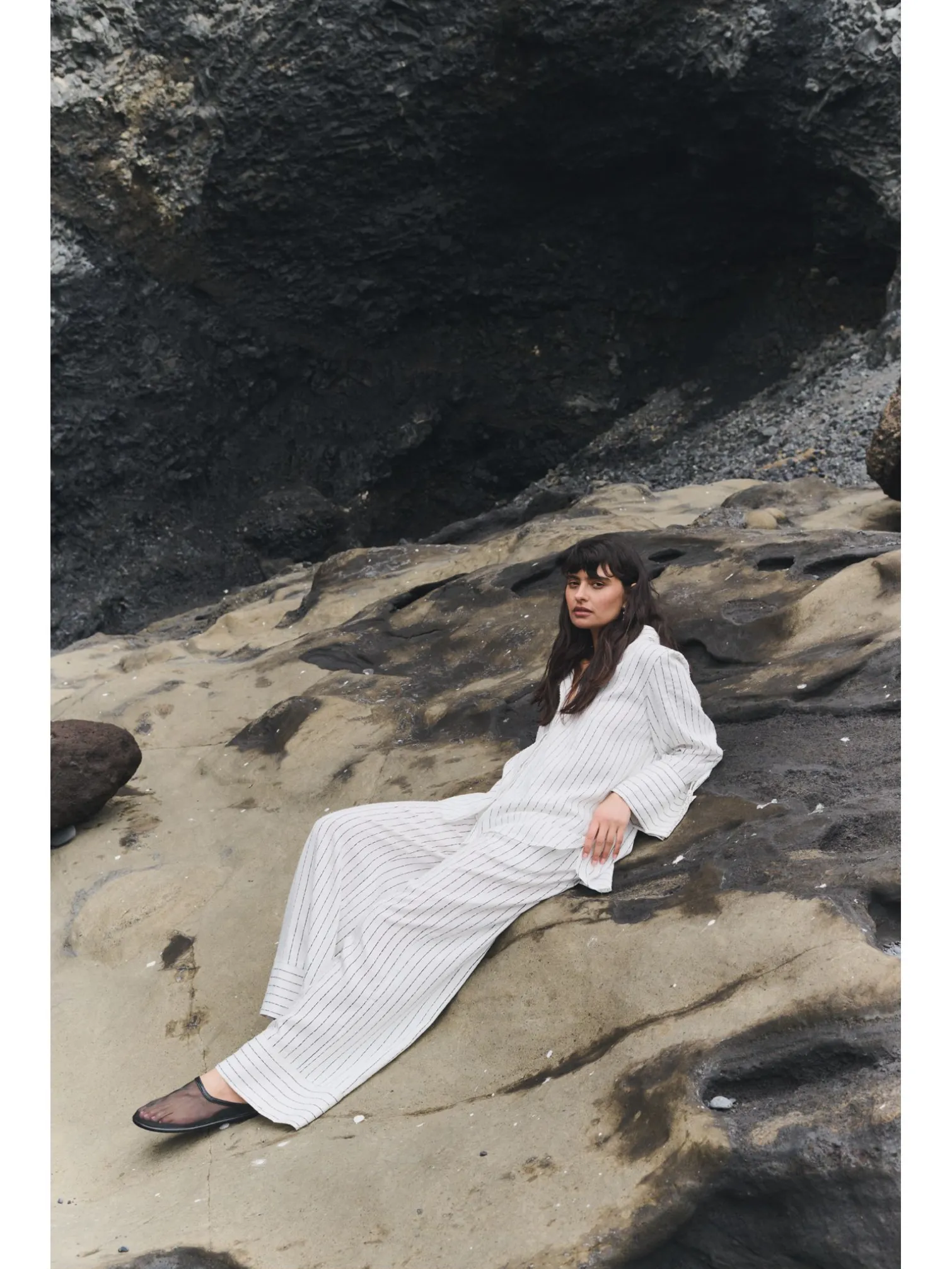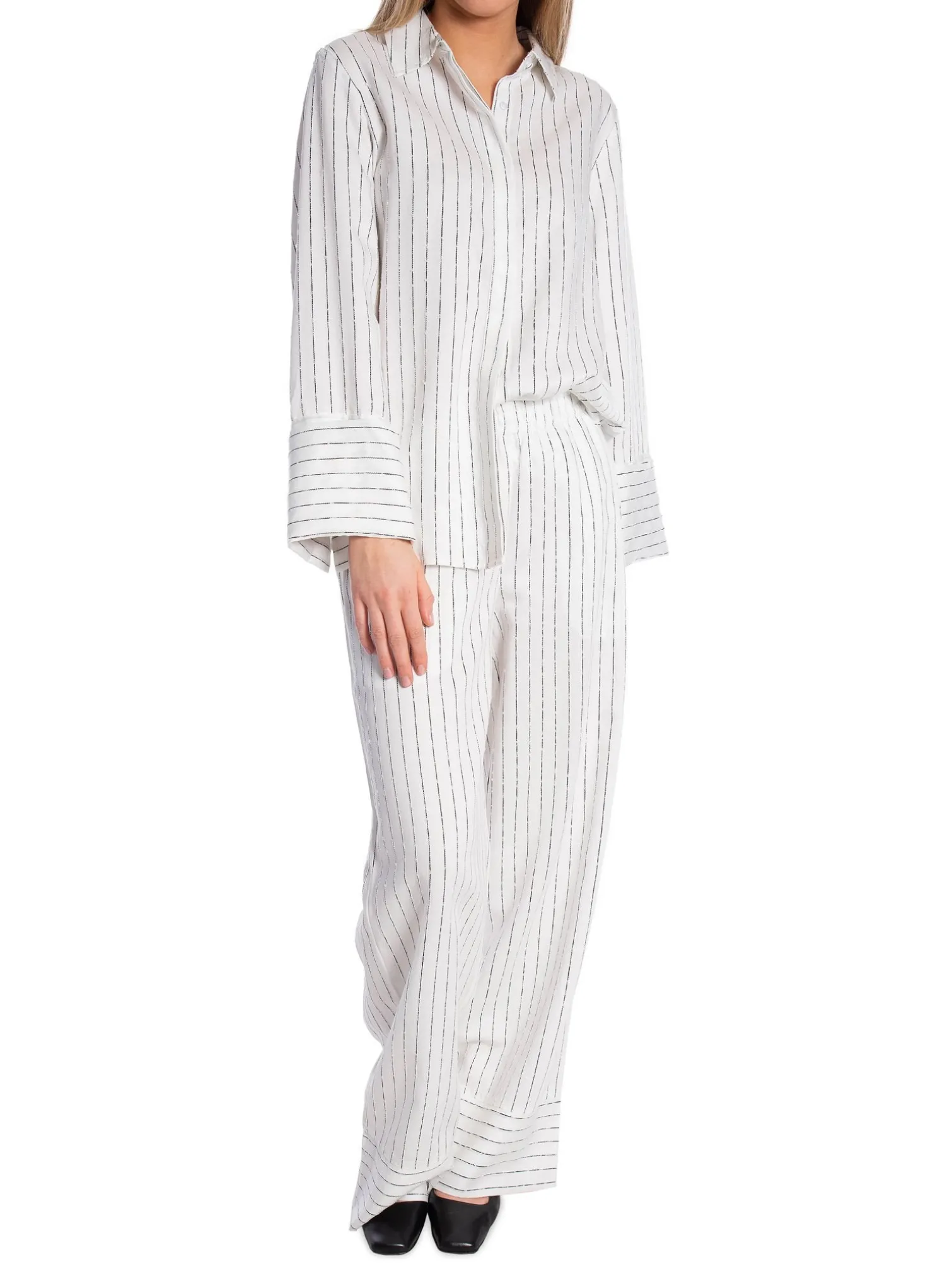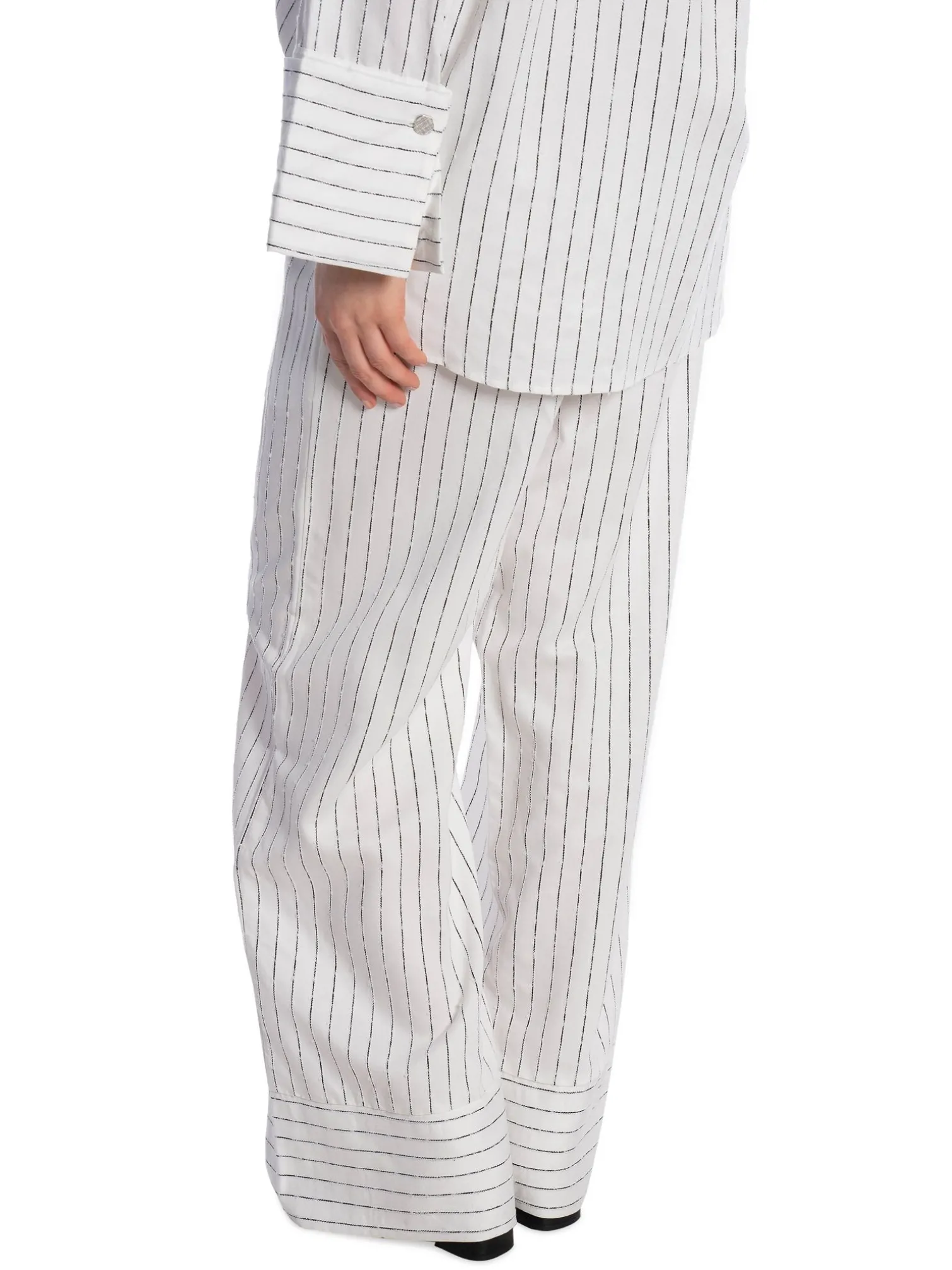 Kerry 3 trousers from Levete Room. A pair of lovely striped full-length trousers. Designed with two pockets and an elastic waistband. Style with a matching shirt for a trendy look!