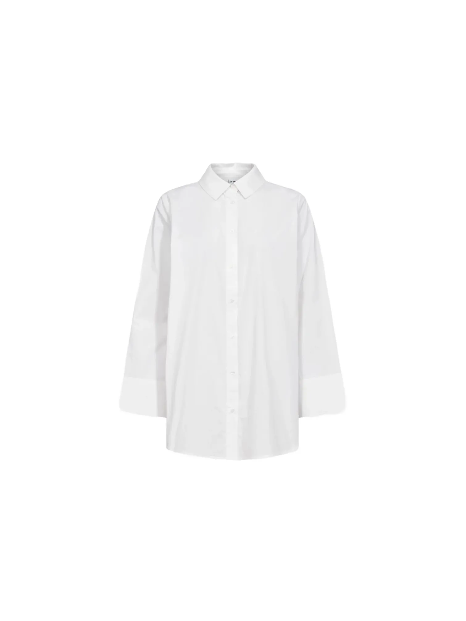 Shirt Kia from Levete Room. A straight shirt with wide cuffs. The back has a unique design with a long slit diagonally across the back. Style with your favorite jeans!