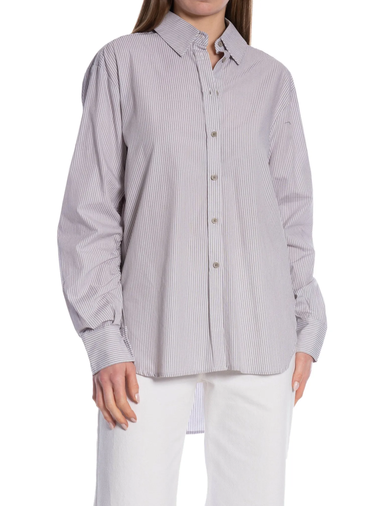 Shirt Panna from Leveté room. A stylish striped shirt with gathered details in the sleeves. Wear with a pair of light jeans for a classic everyday look!