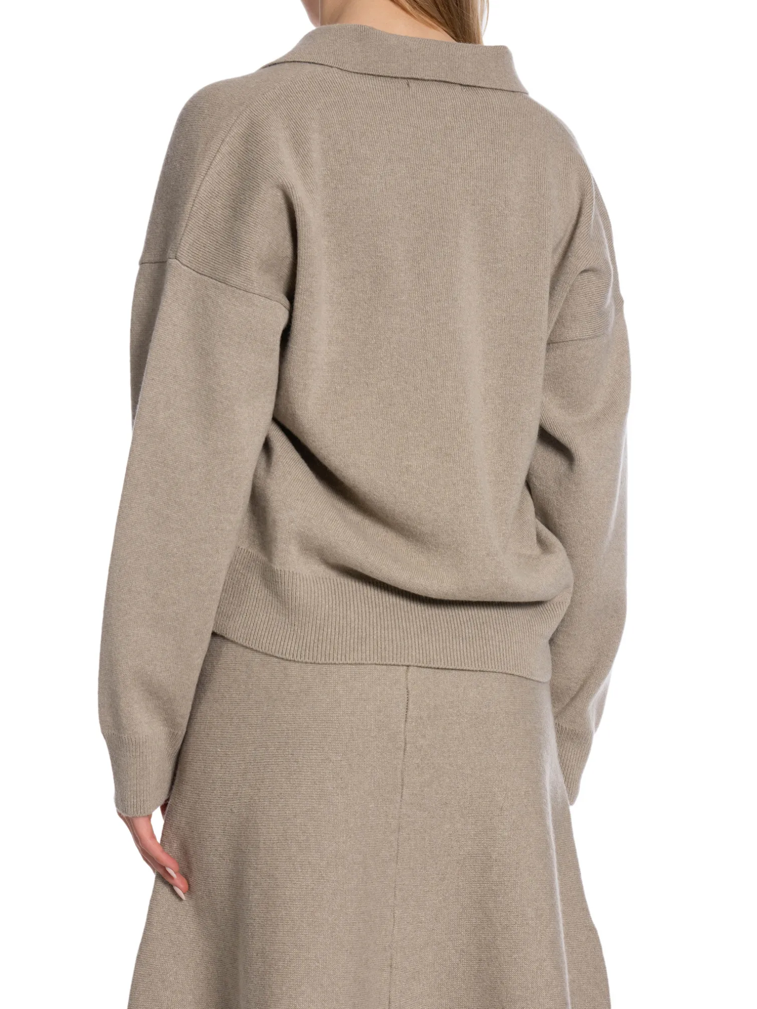 Sweater Winni from Levete Room. A wonderful knitted sweater with a nice V-neck and collar. The sweater has a loose and comfortable fit, the sweater also contains partly recycled wool!. We style it with the matching skirt from the same brand for a stylish look!