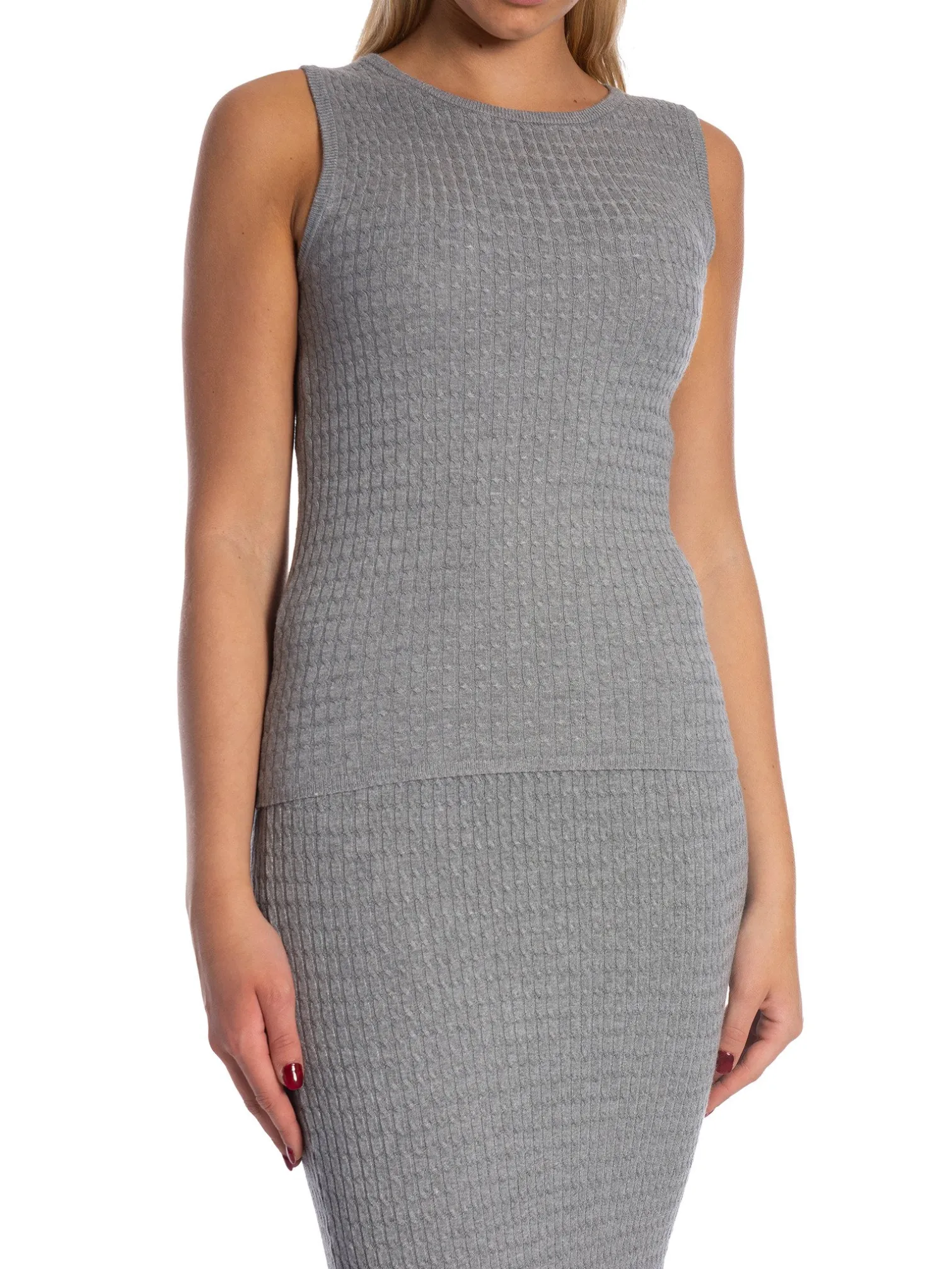 Linen Igor 3 from Levete Room. Trendy cable knit linen in a soft viscose blend. Designed with contrasting ribbed cuffs, hem and neckline. Style with the skirt Igor 1 for a complete cozy way.