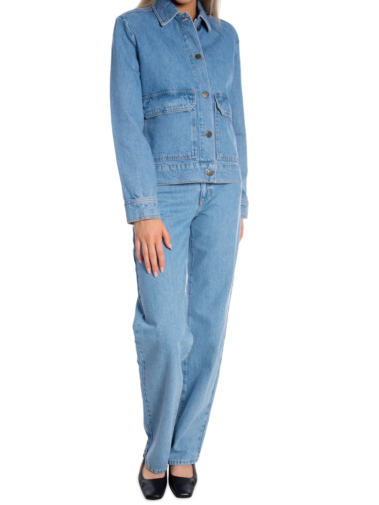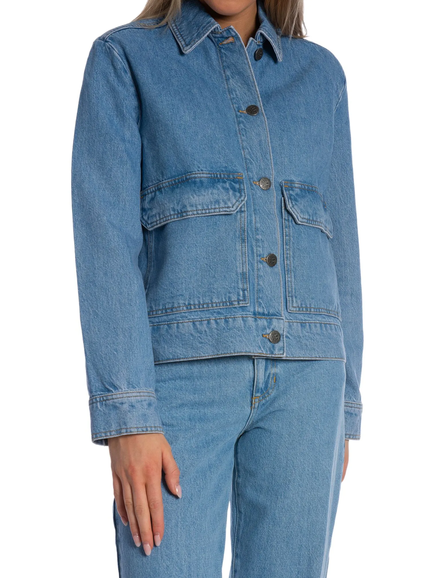 Jeans jacket Short Denim Jacket from Lexington. A stylish denim jacket with a straight fit. Decorative buttons for closure. Large pockets with flaps at the front. Style with a t-shirt underneath and with a pair of jeans for a complete and trendy denim look.