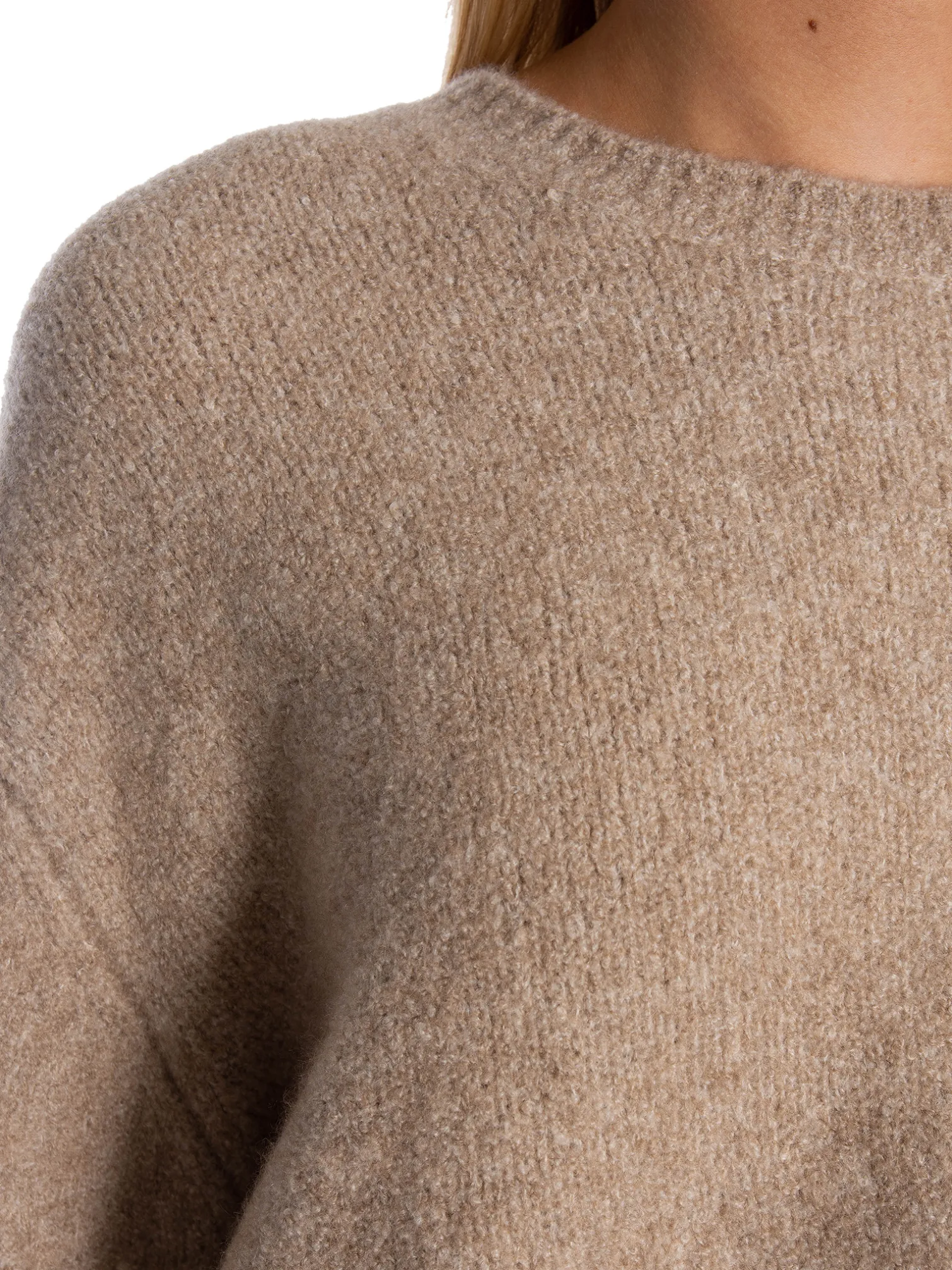 Sweater Hazelle from Lisa Yang. A stylish bouclé knitted cashmere sweater in beige. A stylish boxy slightly cropped fit with long sleeves and rounded neckline. The perfect knitted sweater for your leather pants!