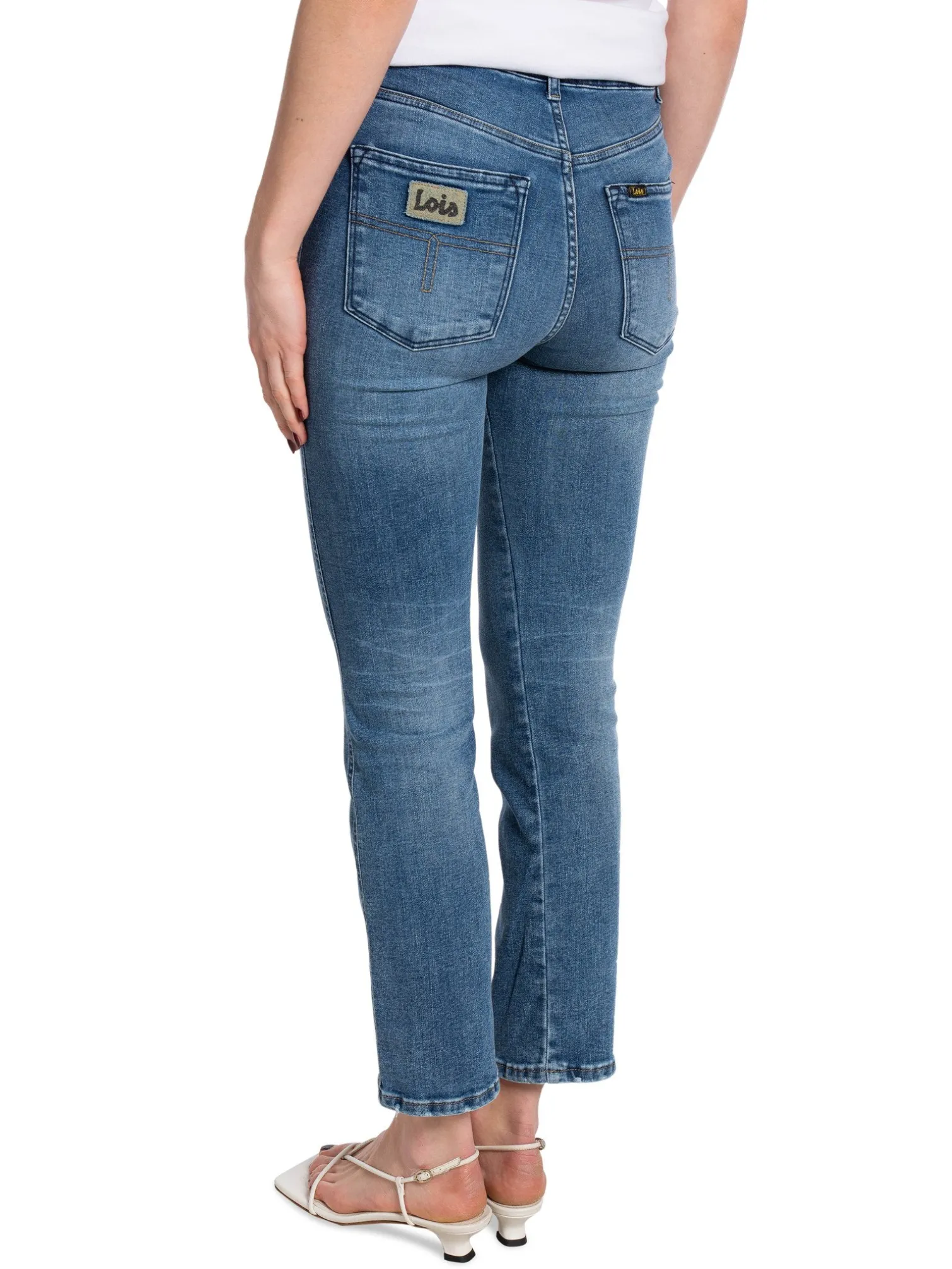 Jeans Malena-F from Lois. Classic straight jeans in a 5-pocket model. Designed with details on the pockets, high waist and closes with a zip and button.