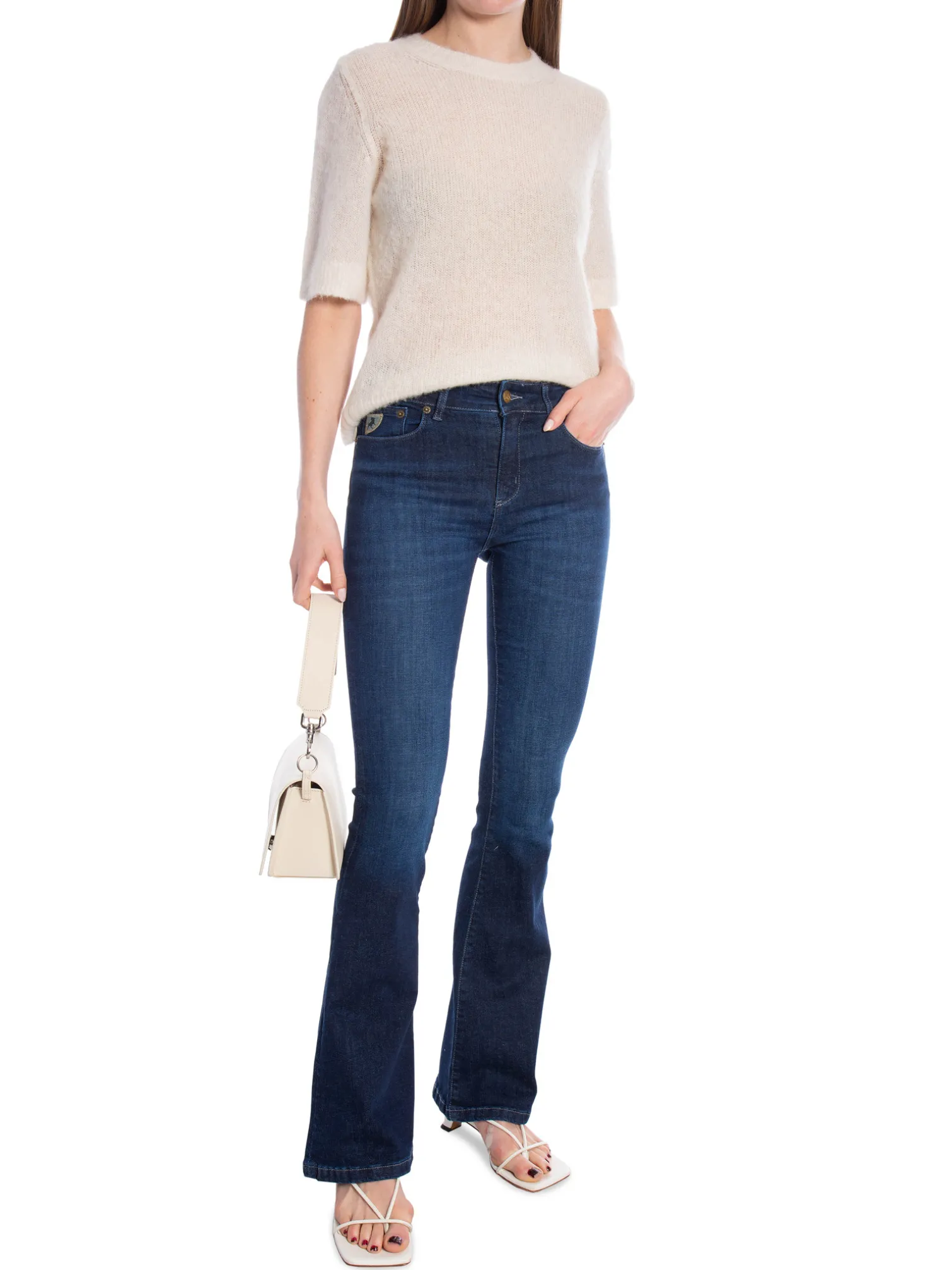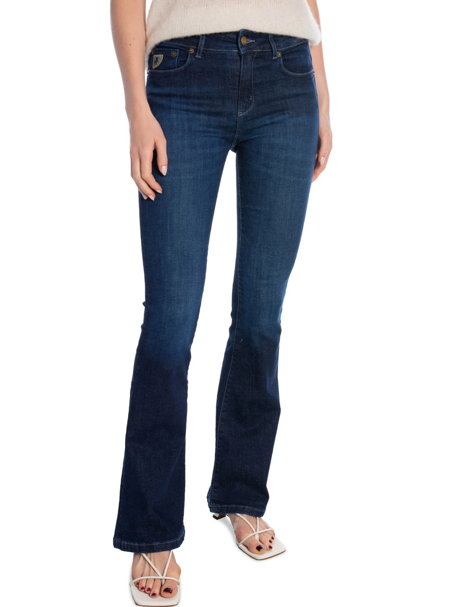 Jeans Raval from Lois. A pair of slim fit bootcut jeans in a classic blue wash. Designed with a slim fit at the top with a high waist. Exposed leg ends. The jeans have a stretchy quality that follows the body flatteringly.