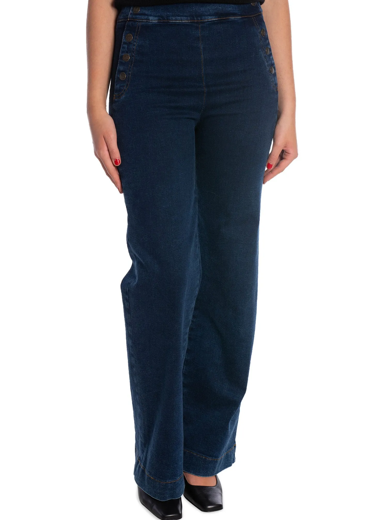 Jeans Sirena from Lois. A pair of stylish jeans in a straight full length. Designed with a high waist for a flattering silhouette. Buttons on the sides at the front. Closes with a zipper on the side. Style with a knitted sweater and a pair of boots for the perfect fall look!