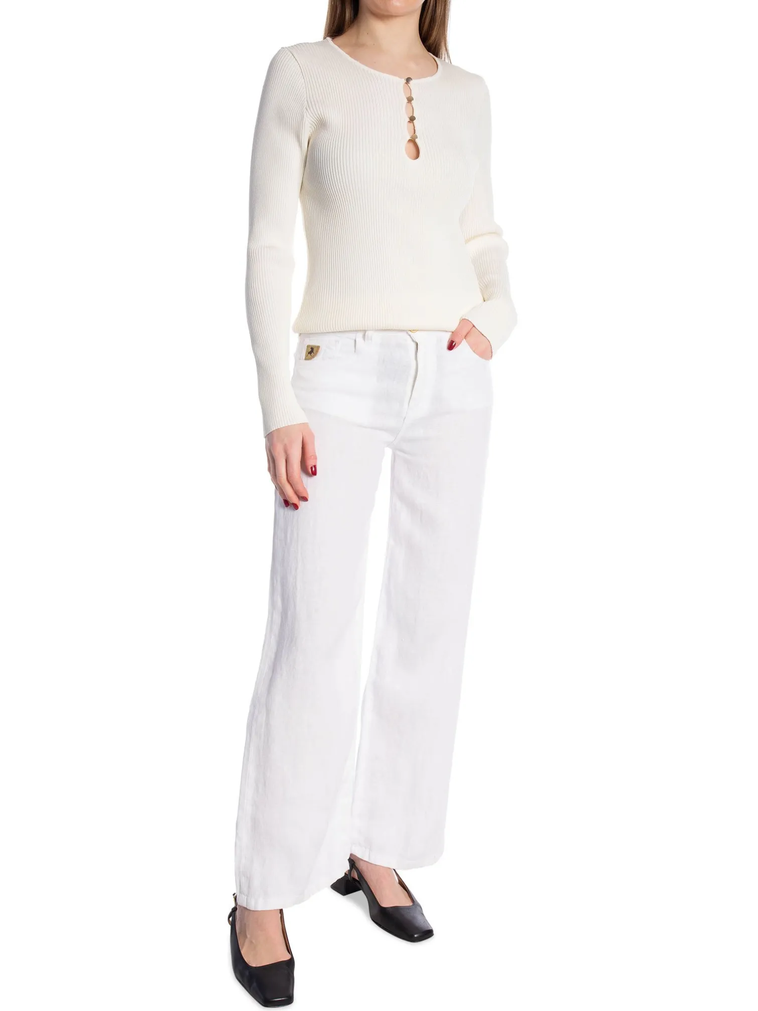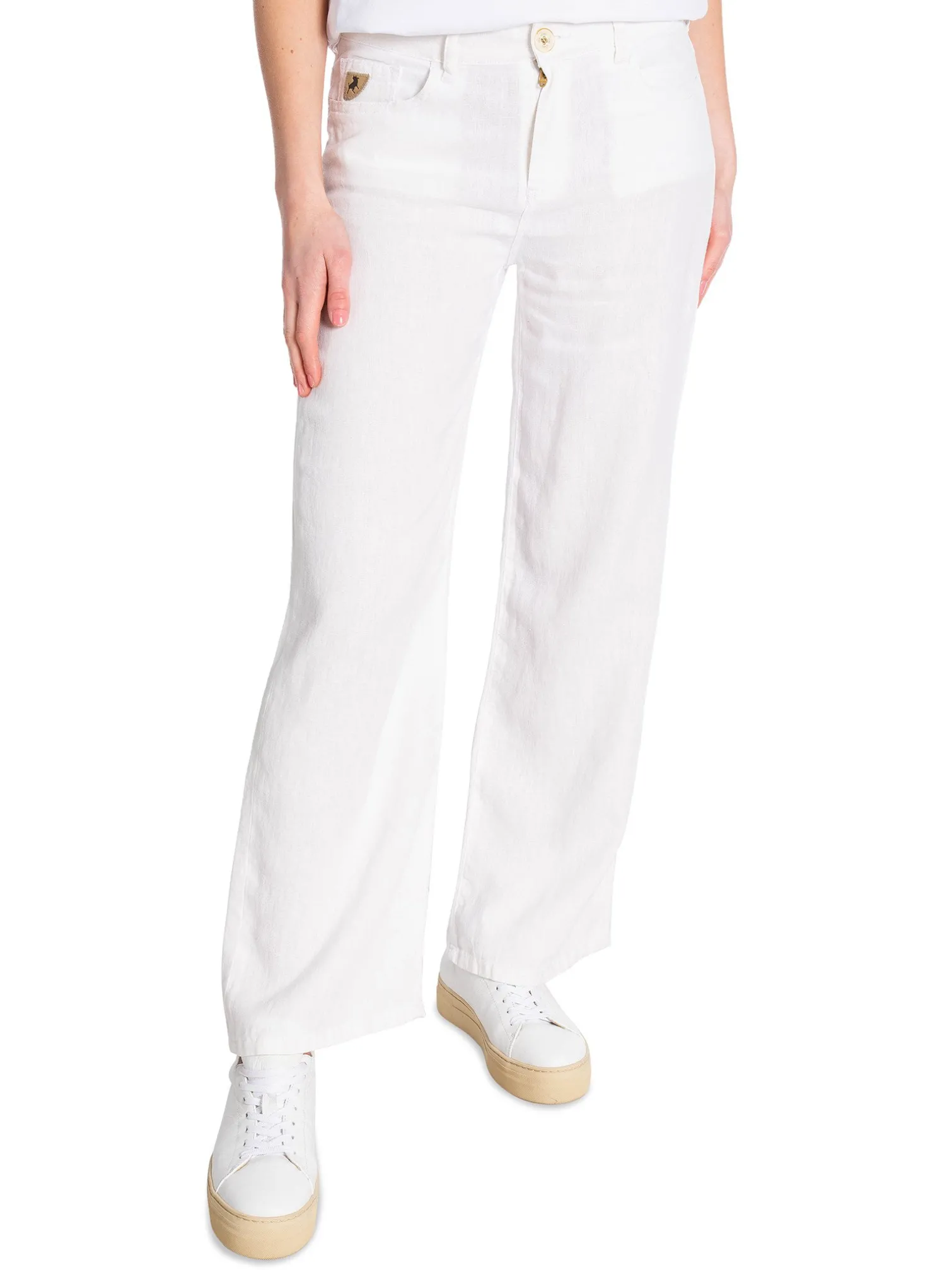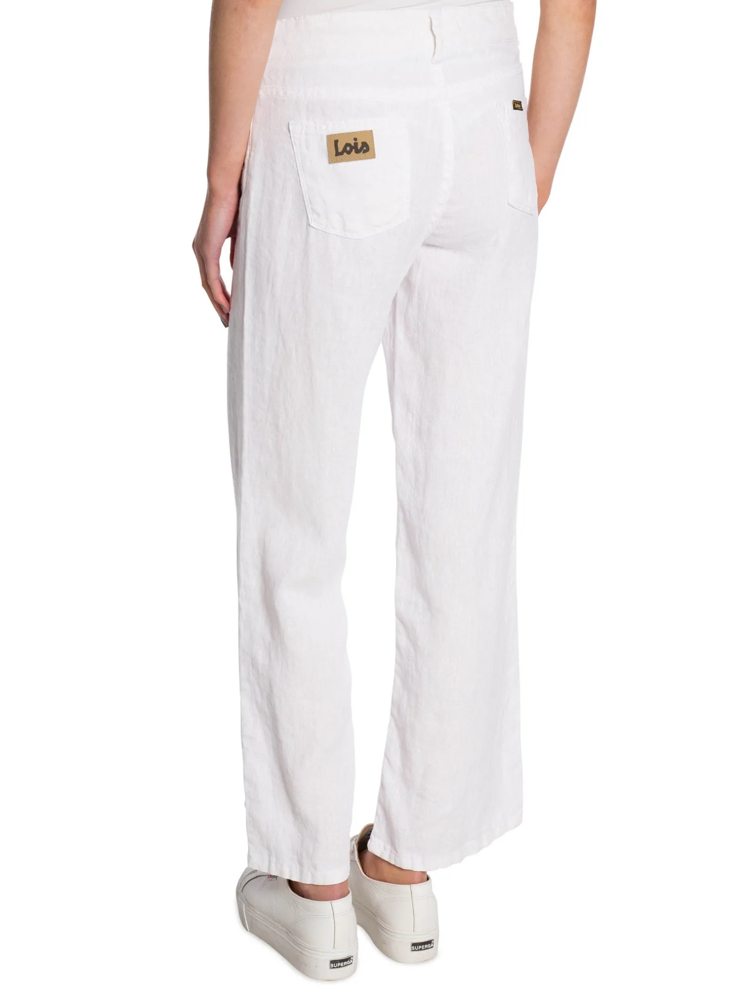 Pants Culotte White from Lois. A comfortable and stylish pair of pants. Designed in a straight cropped fit with pockets both at the front and back. Made in Spain. The perfect pair of pants to all the relaxed warm days when you easily want to dress up with a top and a pair of heels!