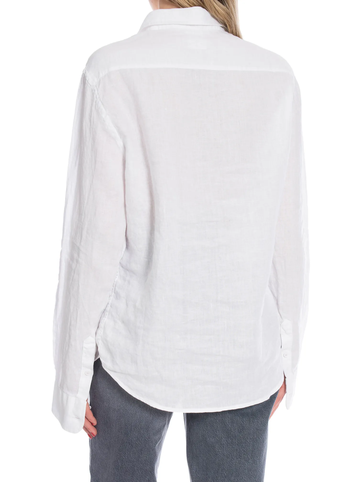 Shirt Luca Air Linen from Lois Jeans. Airy classic linen shirt with an oversized feel. The shirt is just over the hip lenght with a chest pocket on the right side and a small logo on it. Style with a pair of jeans or shorts for the summer!