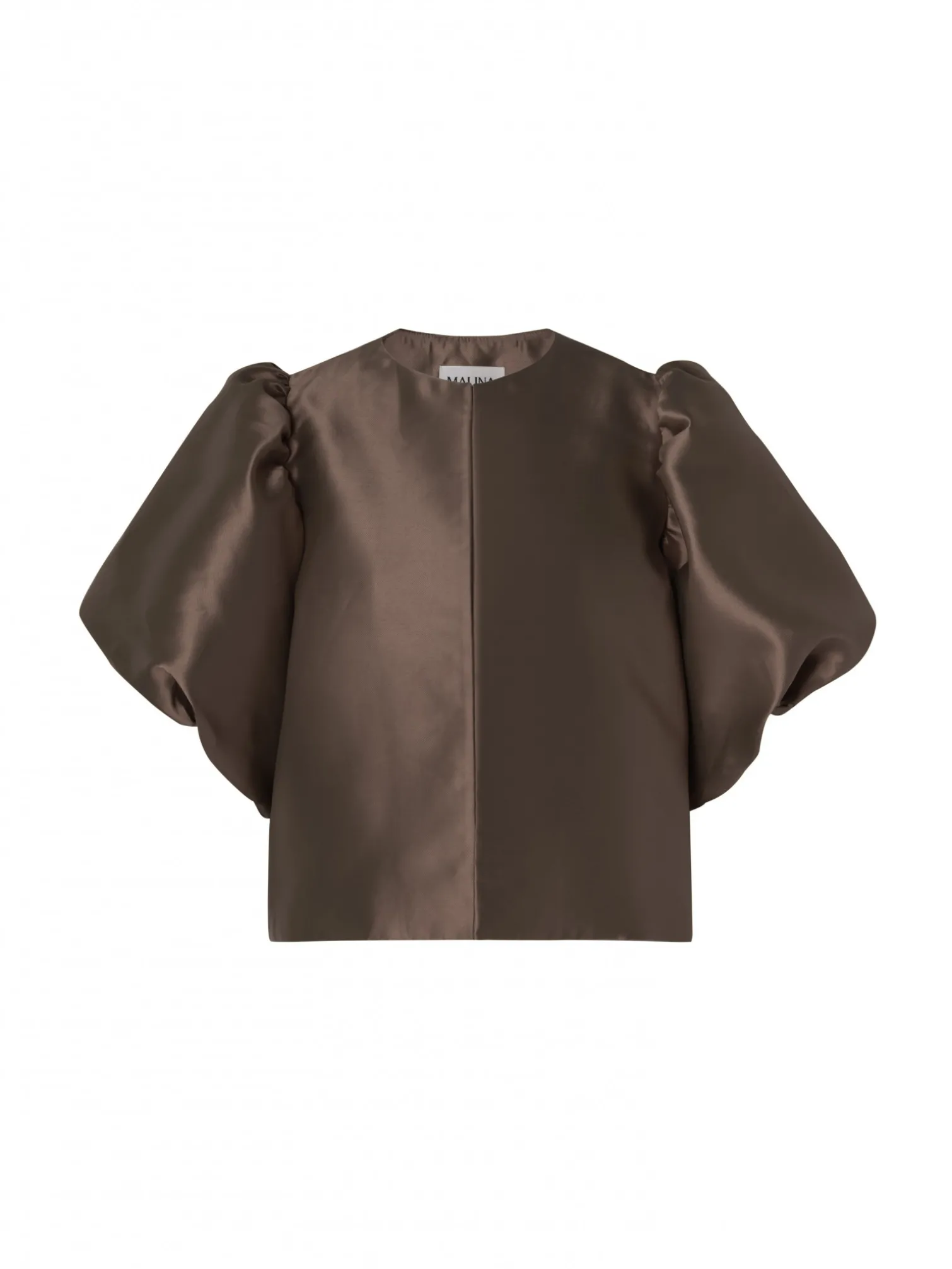 Blouse Cleo Pouf Sleeve from By Malina. An elegant blouse designed with puffy balloon sleeves, in a stiff and shiny material that makes it feel extra luxurious. The blouse has a wide silhouette in the fit and hidden hooks at the front.