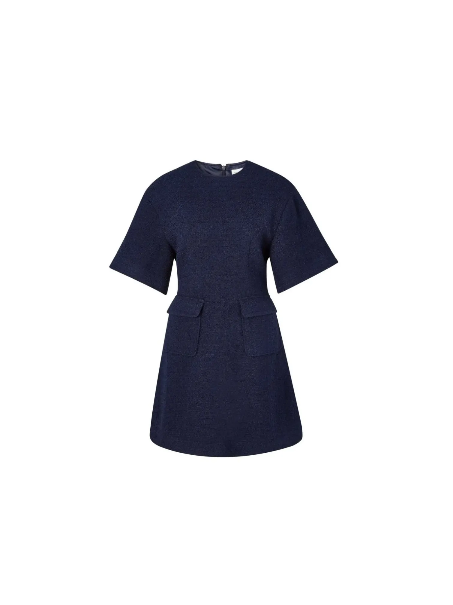 Dress Rayna from MALINA. A stylish dress in a fitted fit. The cinched waist gives a feminine and elegant silhouette. The structured material gives the dress a classic and exclusive look. The dress has pockets at the front and closes with a discreet zipper at the back.