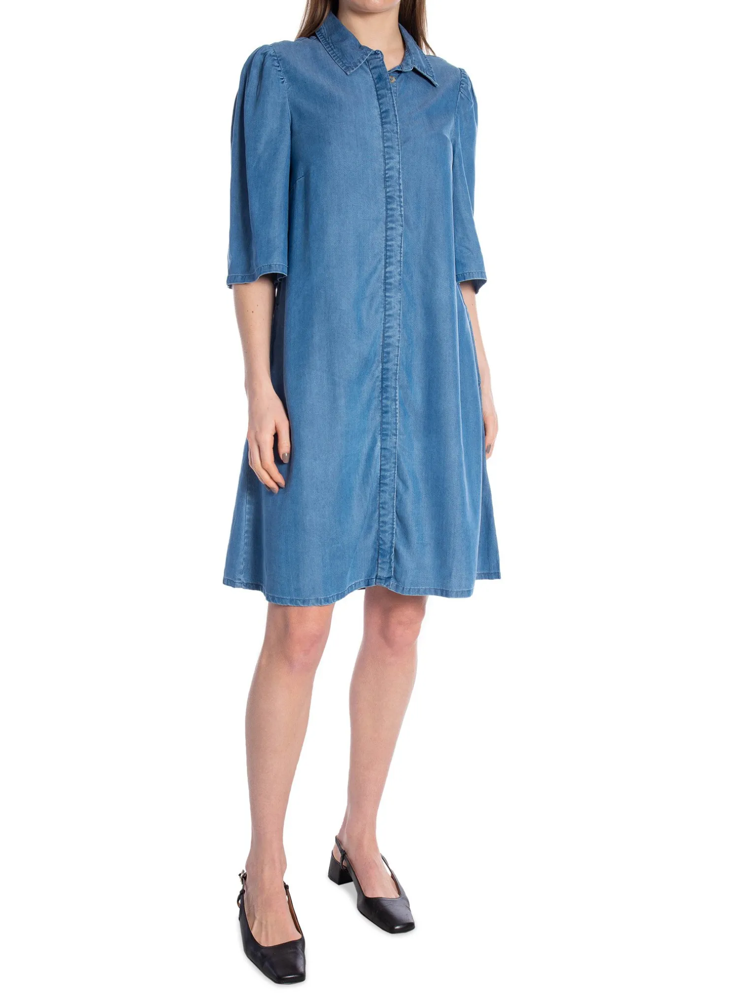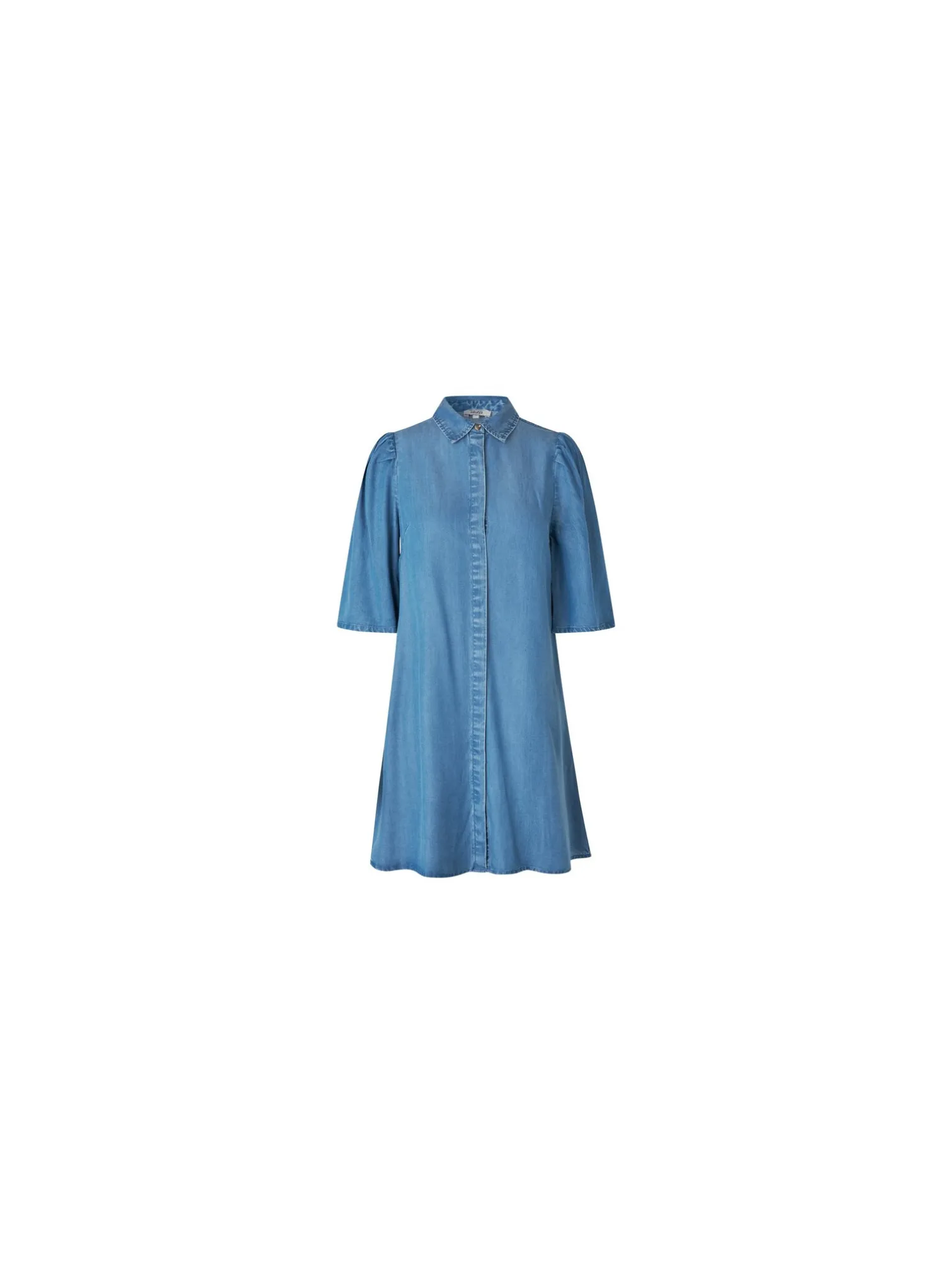 Dress Sophien from mbyM. Short-sleeved shirt dress with hidden buttons at the front. Wear with a pair of slippers to the beach or dress it up with a pair of heels and a belt at the waist!