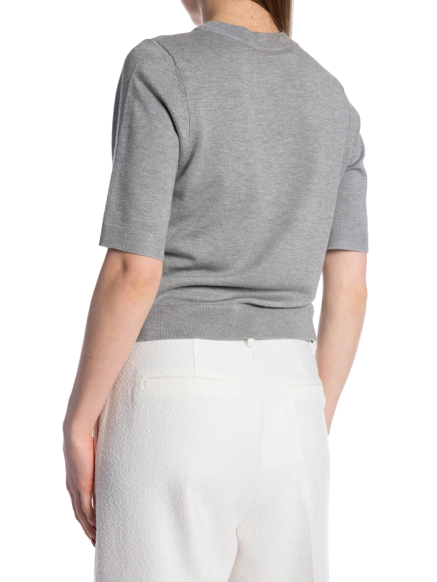 Sweater Carla from Mbym. The sweater has a round neckline and short sleeves. Perfect for layering or wearing alone!