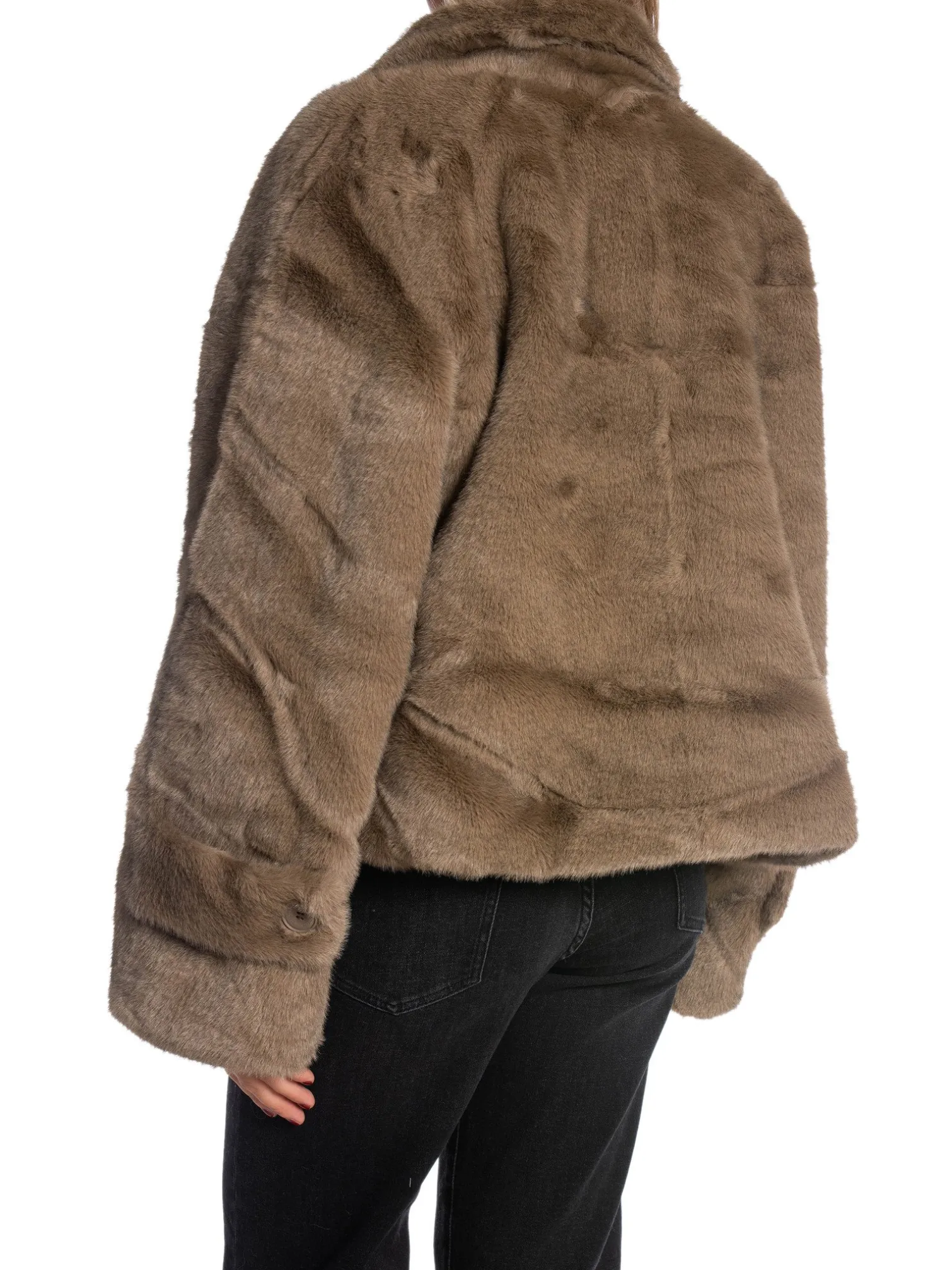 Jacket Kelly from Meotine. A luxurious fall jacket in fake fur. Designed in a short model with a wide collar, button closure at the front. Perfect to wear with a skirt with a pair of boots!