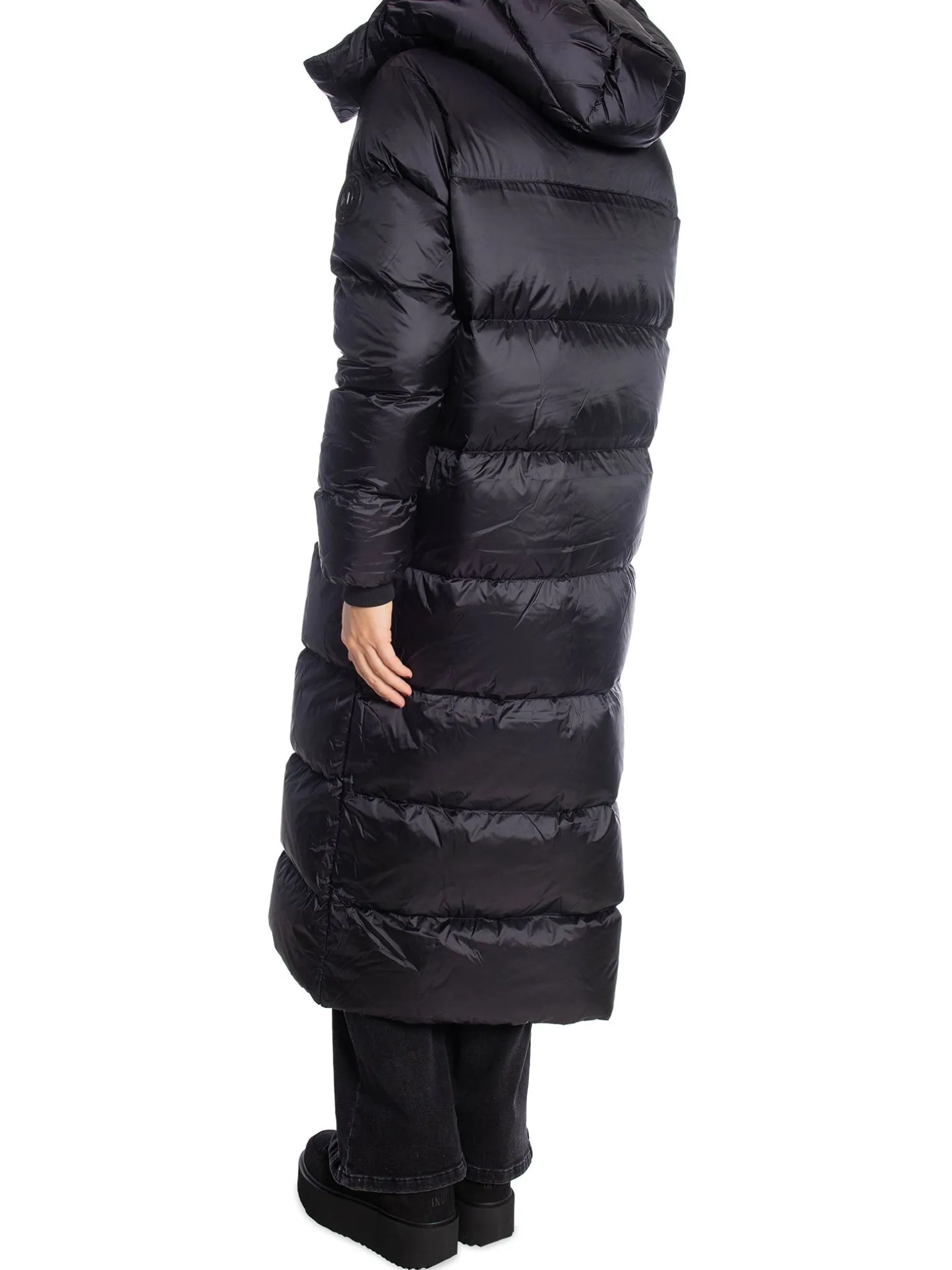 Jacket Lucie Boxy Long from Monel. Lovely puffer jacket with a straight, relaxed fit. The jacket is designed with a hood, high collar and cuffs at the cuffs that keep you warm and pockets in the side. The jacket also has Monel’s logo on the sleeve and closes with a zipper and magnetic buttons.
