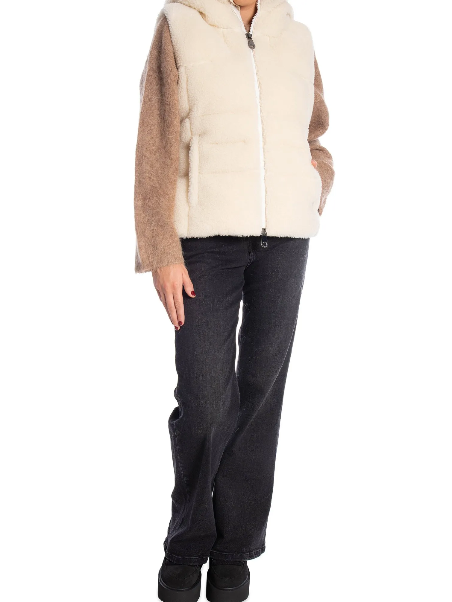 Väst Camille from Monel. The Camille teddy vest is the tough version of the Camille vest, slim fit with a feminine silhouette and spacious zippered pockets. This teddy vest will become your go-to in cold weather.