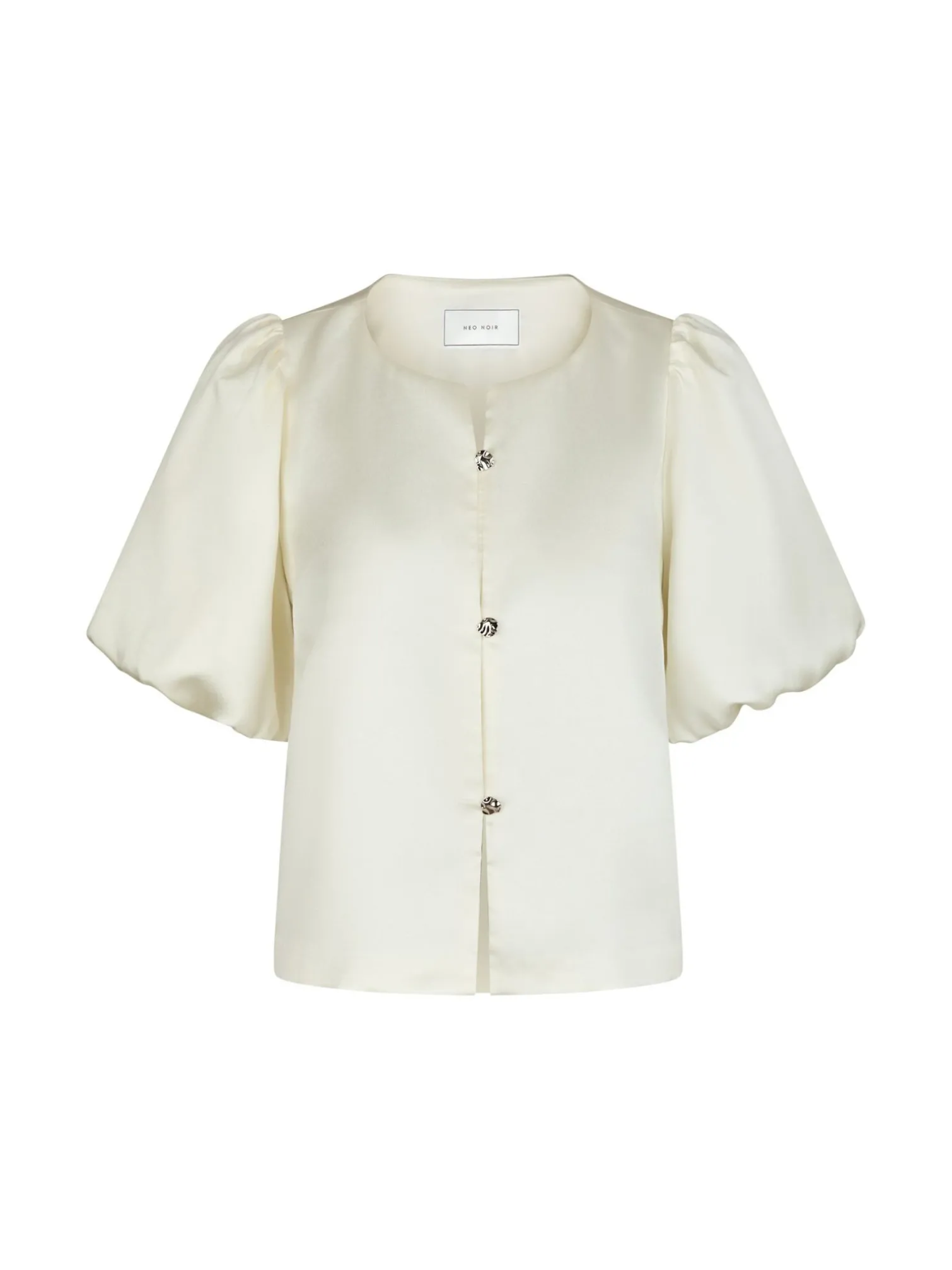 Blouse Aisa from Neo Noir. A stylish top in a lovely light shade that shimmers in the satin fabric. Designed with small silver buttons at the front and puffy sleeves. The perfect festive blouse that is just as nice for everyday wear with a pair of jeans!
