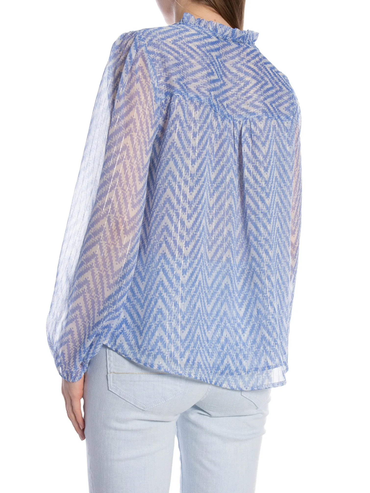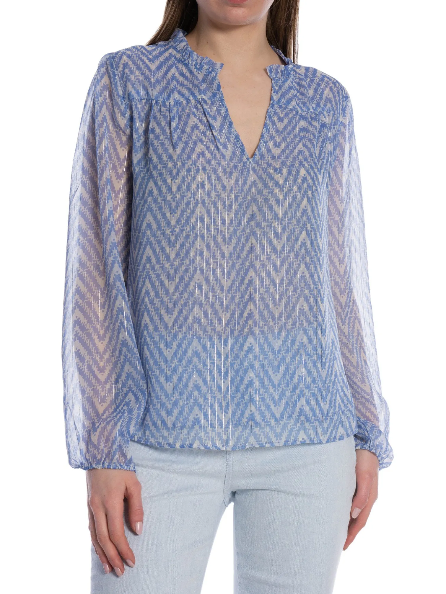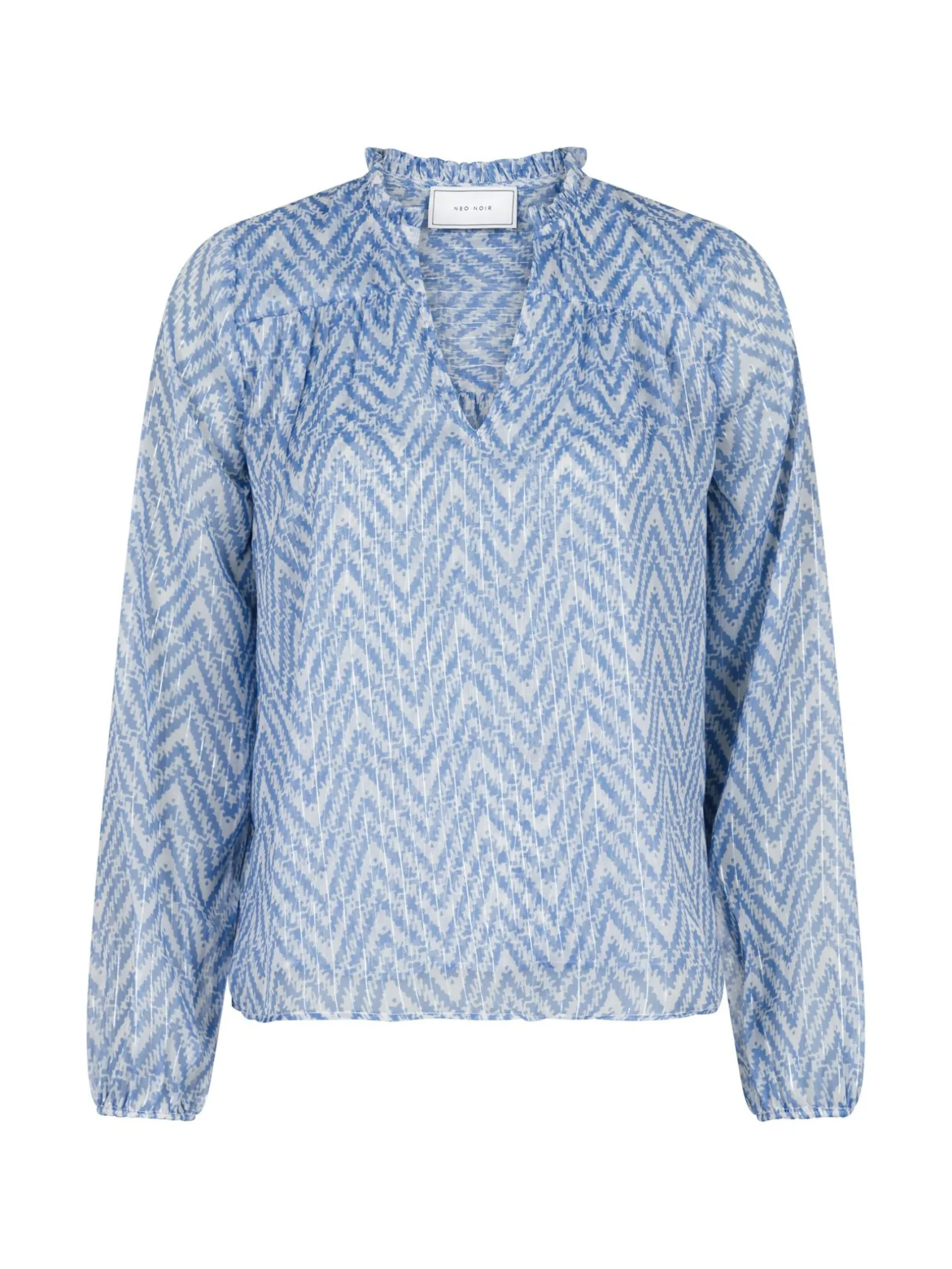 Blouse Bisa Big Tile from Neo Noir. A lovely blouse in a nice light blue color that fits perfectly now until spring. The blouse is designed with a V-neckline, long sleeves with narrow elastic at the bottom and in a normal fit. Style together with a pair of blue denim for a lovely spring look!