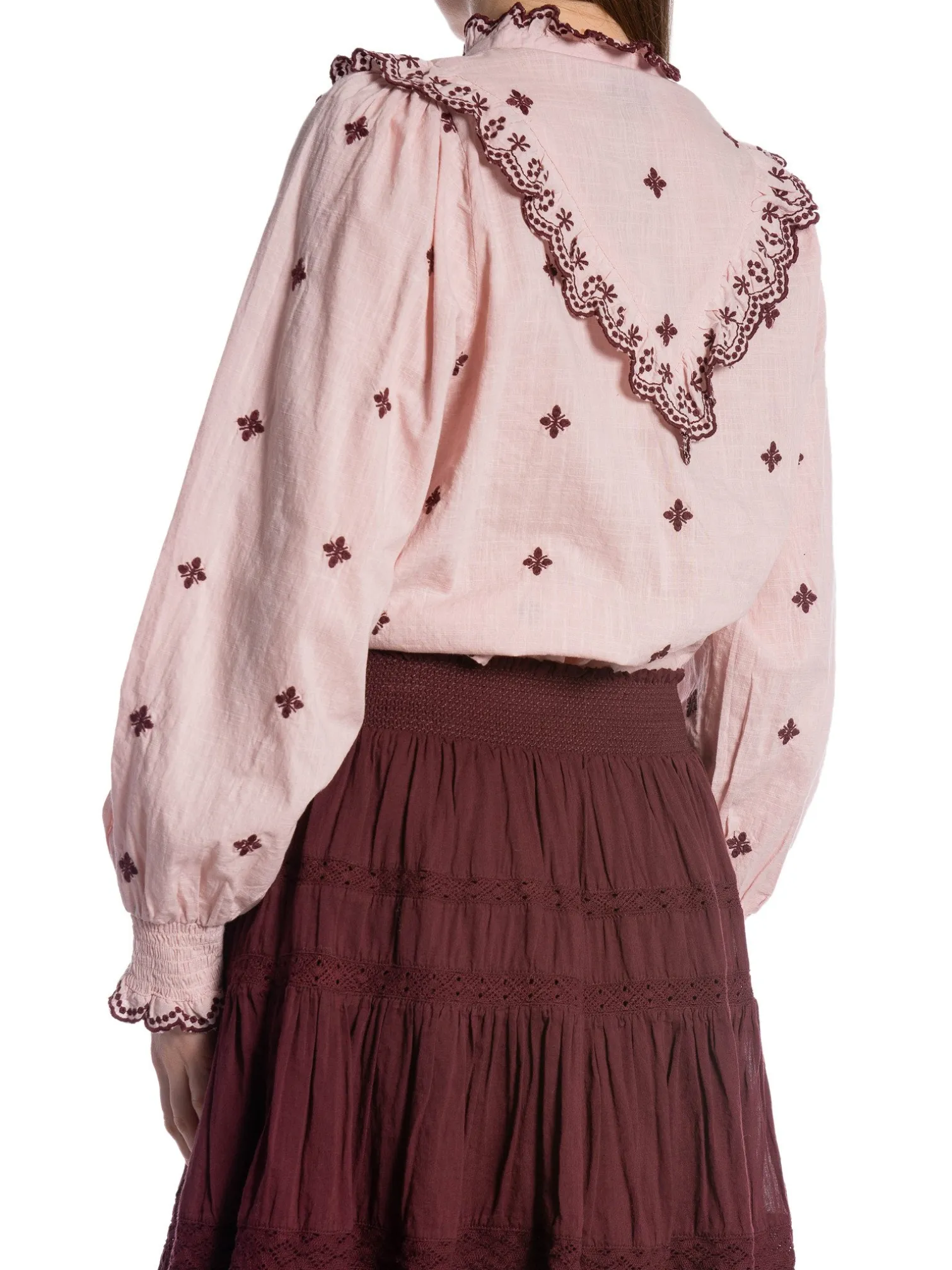 Blouse Degas from Neo Noir. Super cute long-sleeved blouse designed with ruffle and crochet details, elastic band at the cuffs and a V-neck look. Style with a pair of chinos shorts or a nice skirt.