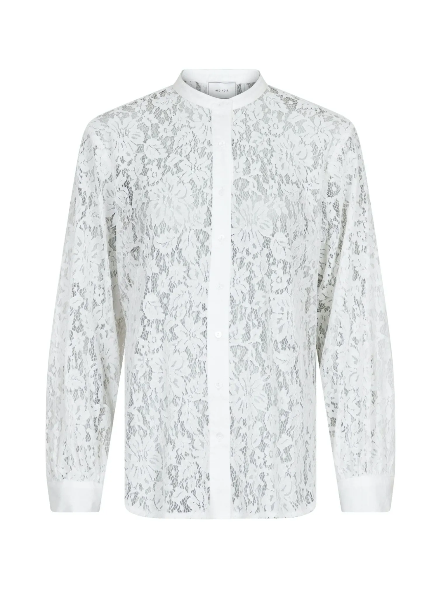 Shirt Mae from Neo Noir. A nice shirt in lace quality, slightly oversized. Buttons on the front and long sleeves. Style with a pair of jeans with a blazer over it for a cool look!