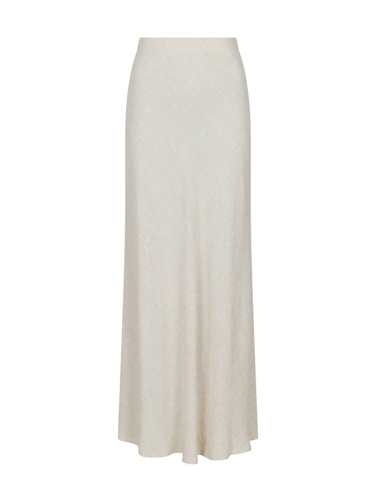 Skirt Viso from Neo Noir. Slim long skirt in a linen blend with a sewn-in petticoat, perfect for warm spring and summer days! Designed with a beautiful hem and with an elasticated waist. Style with a shirt or top for a trendy look!