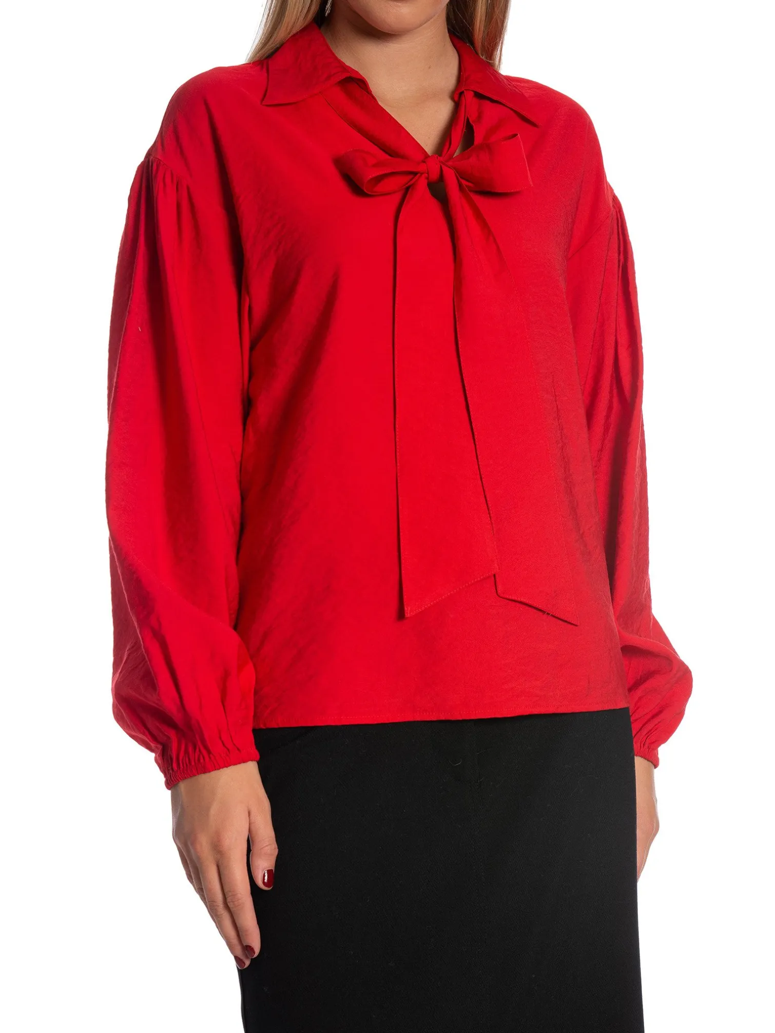 Top Bambo from Norr. A lovely blouse in a viscose blend. It has discreet balloon sleeves and a detachable bow that can be tied around the neck. Perfect to style with a pair of jeans or suit trousers.