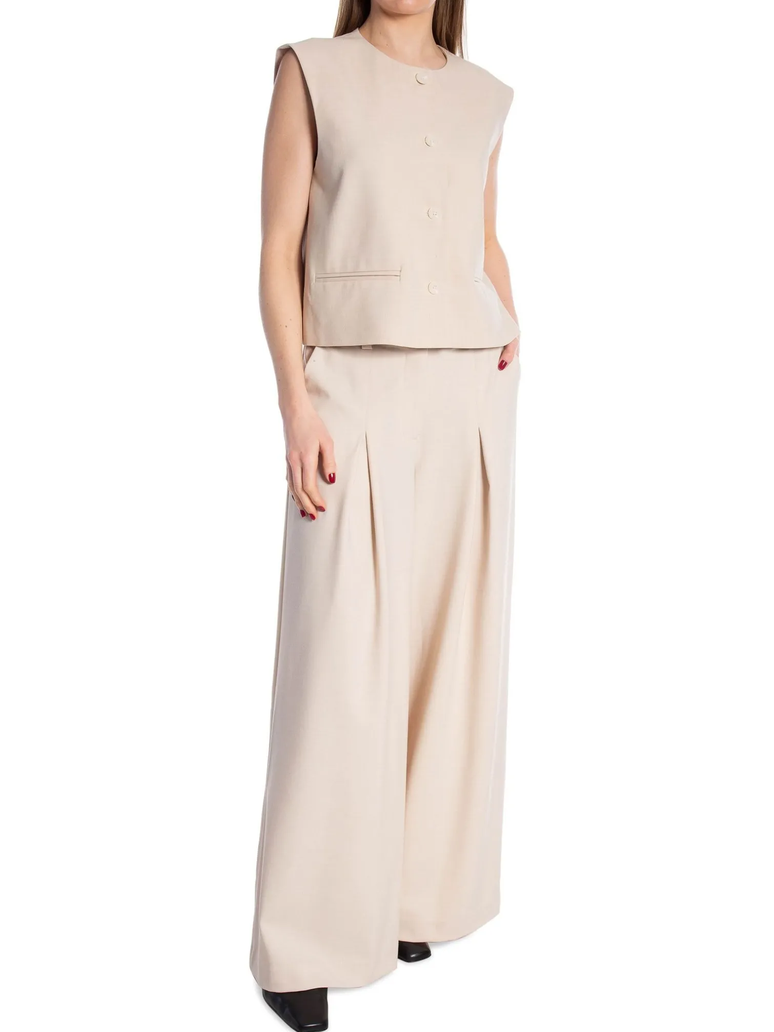 Kamin Wide trousers from Norr. Gorgeous wide trousers in full length, pressed pleats and closure with zipper and hook. Style together with the matching Kamin vest from Norr for a complete look!