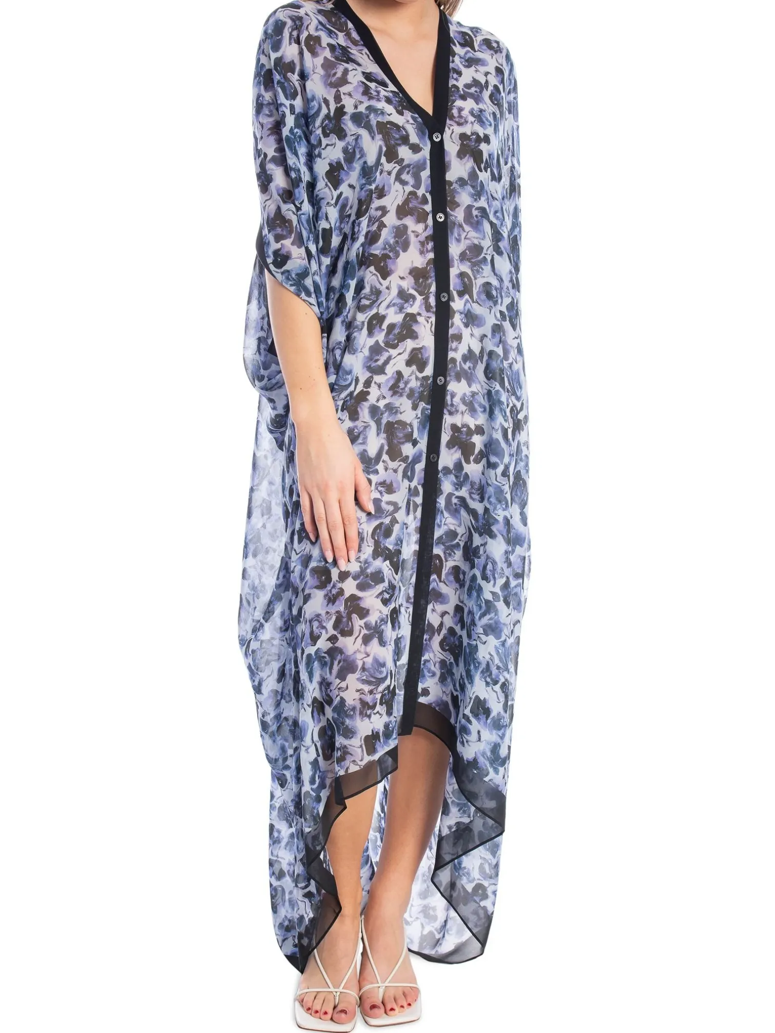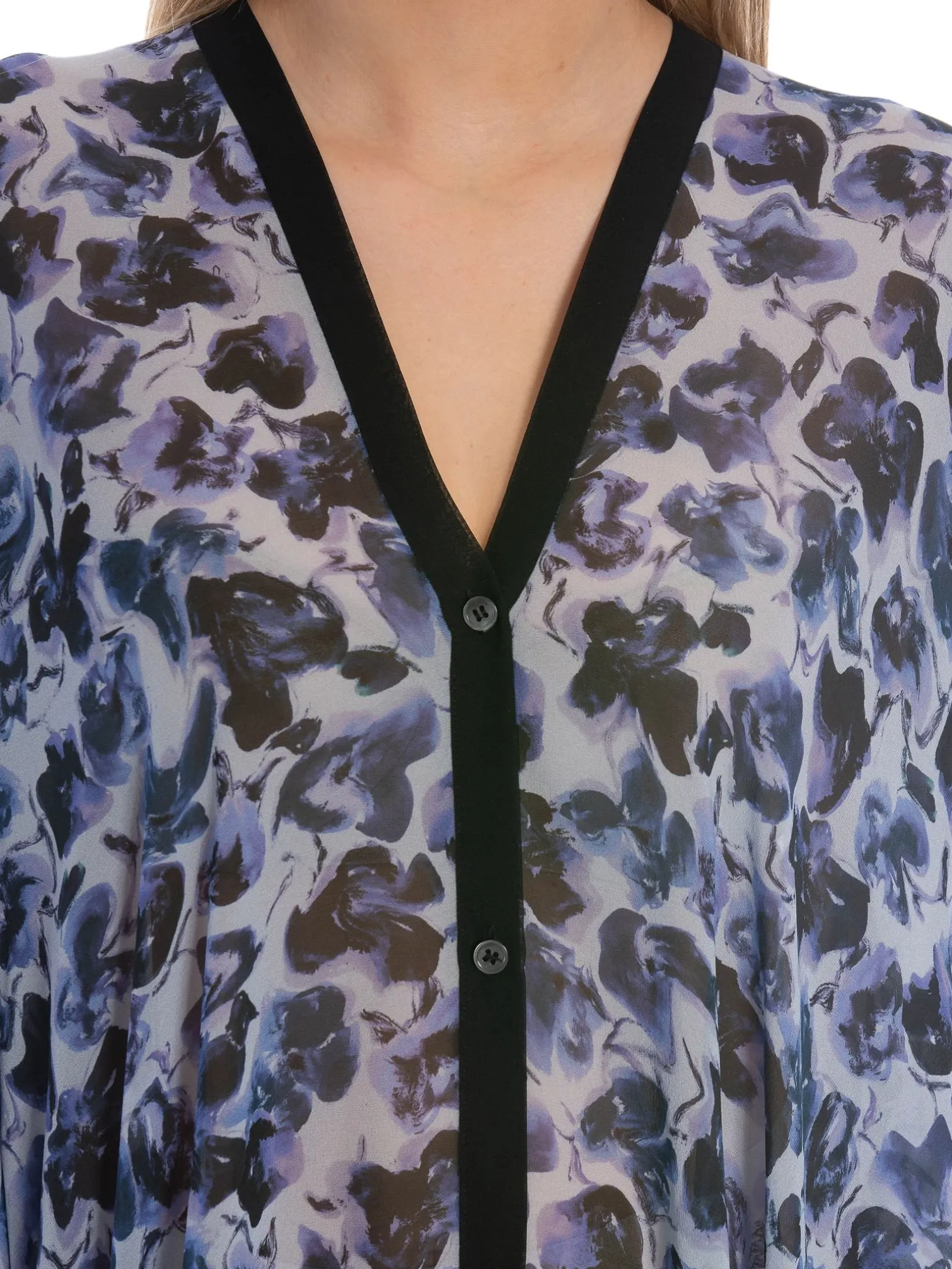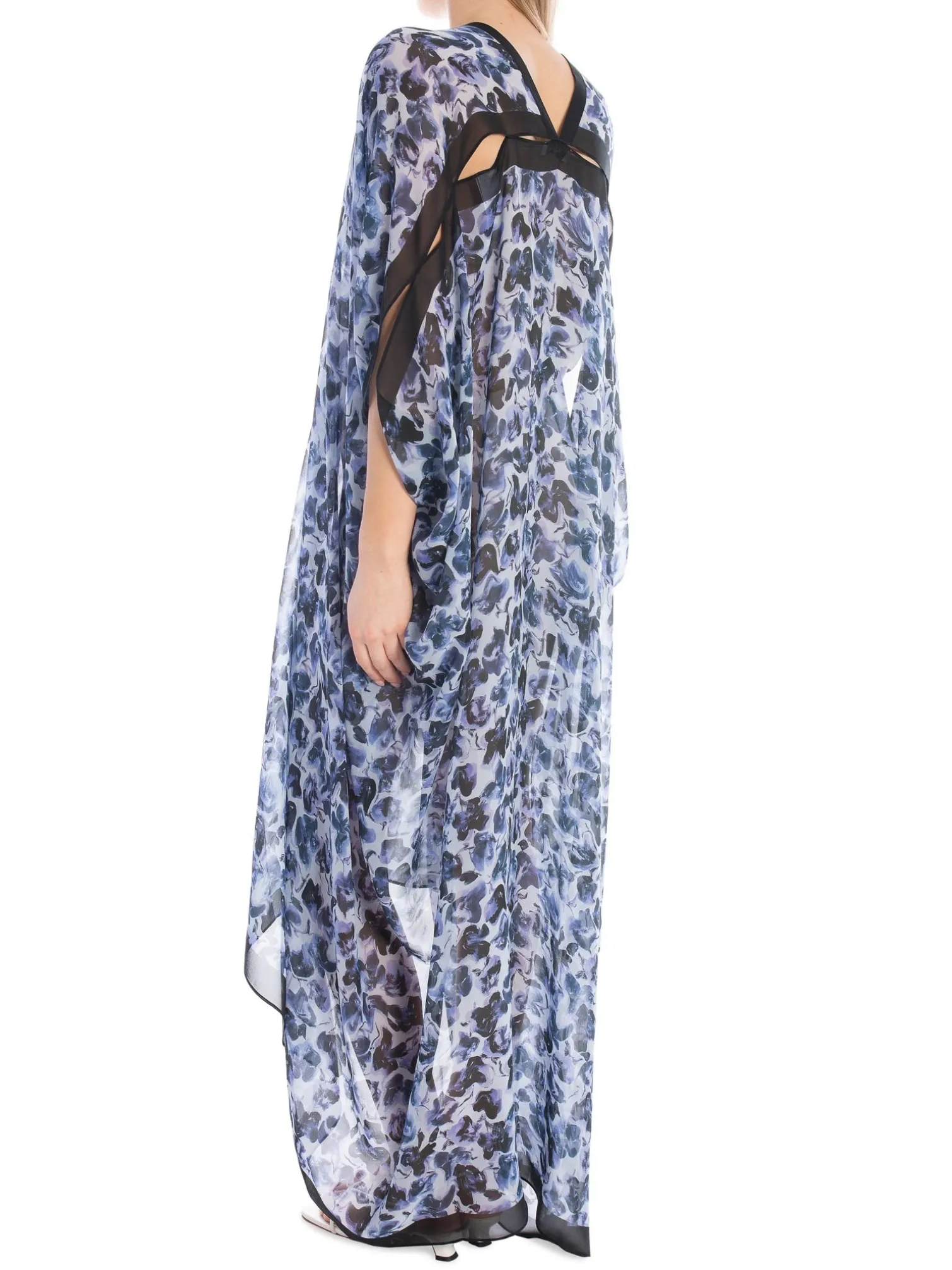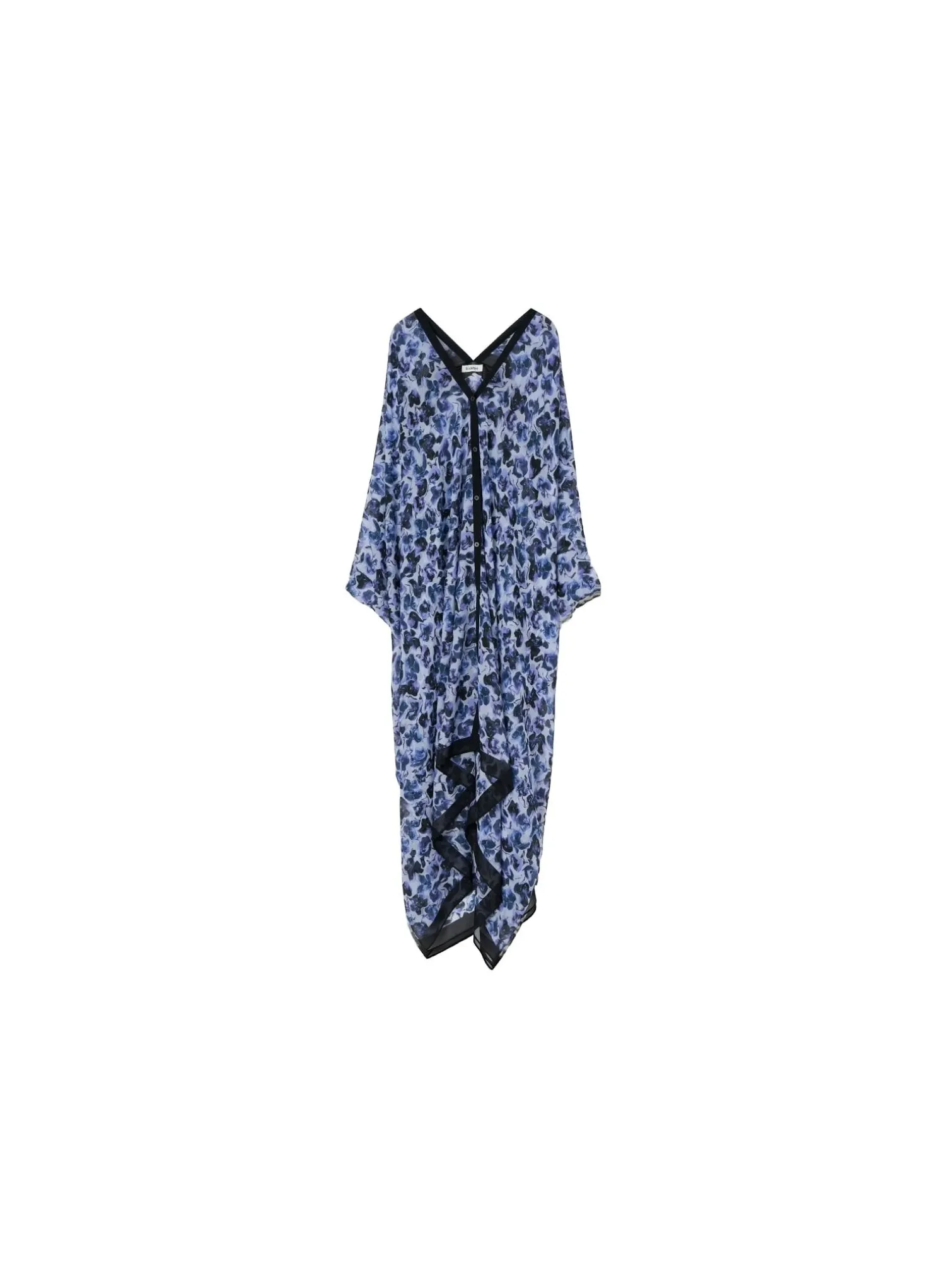 Kaftan Agave from Rodebjer. This season, Rodebjer’s signature caftan Agave is presented in a blurred floral print, inspired by the flowers of Gotland. This flowing design is made from lightweight silk georgette to an oversized silhouette. It is buttoned with a strip of buttons at the front and drapes the figure down from the sharp V-neck to the ruched asymmetrical hem.