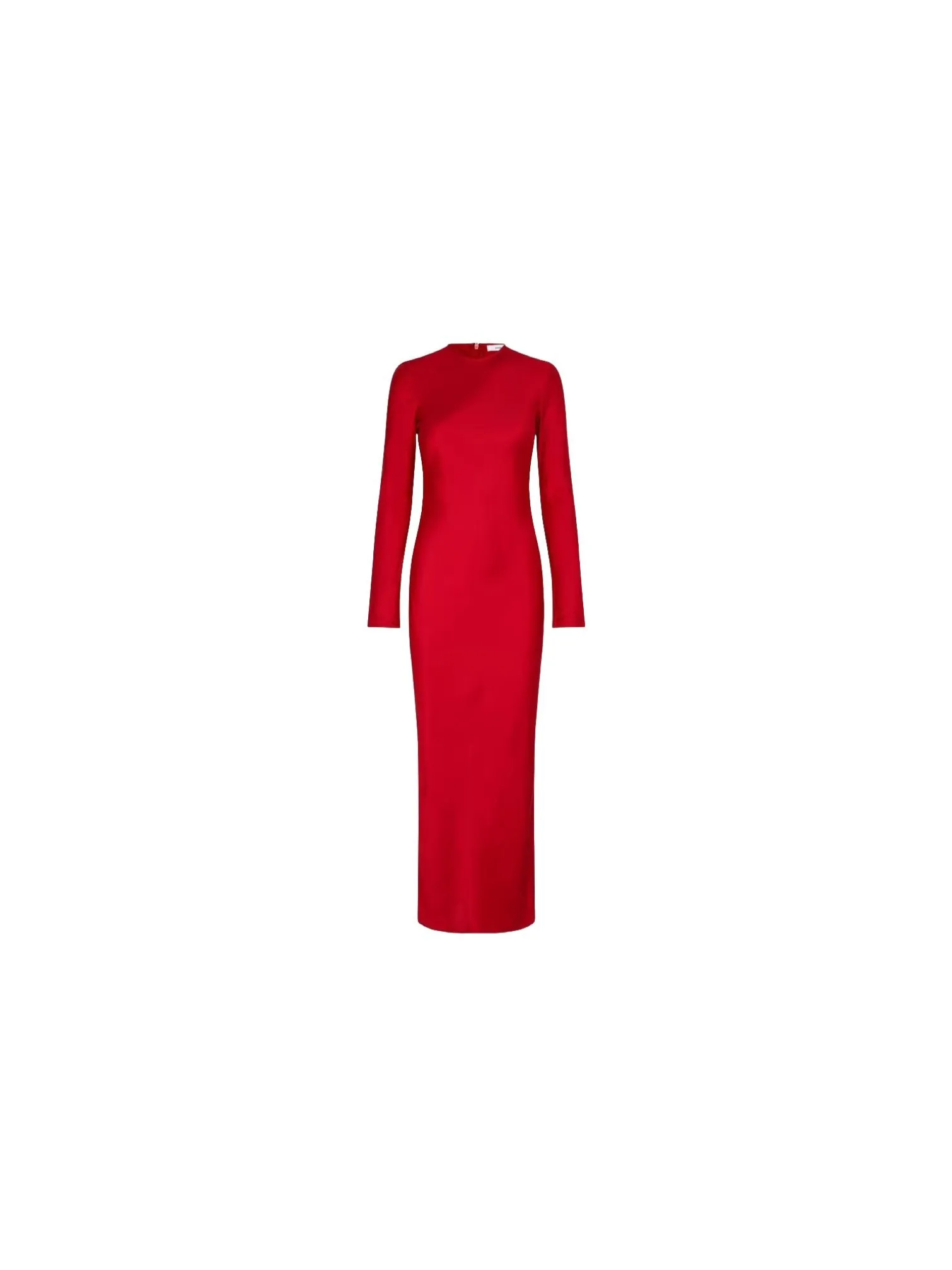 Dress Saalina from Samsøe Samsøe. Wonderful long dress in satin material. Figure-hugging fit and long sleeves. Zipper and slit at the back. Goes perfectly with heels for a party or a nice dinner!