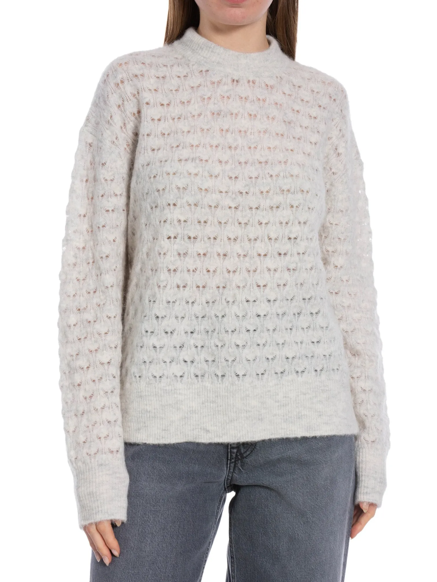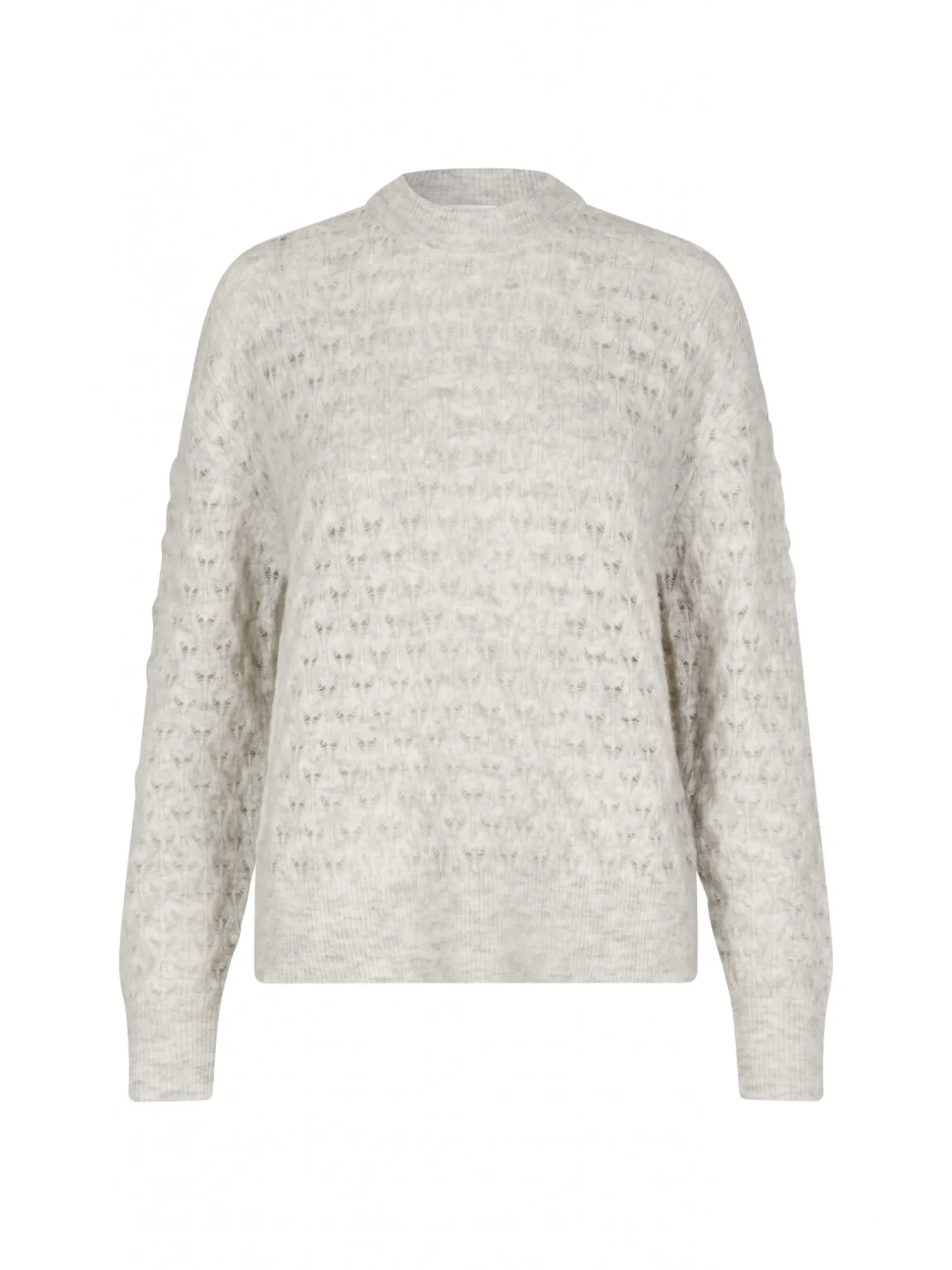 Sweater Saanour Pointelle from Samsoe Samsoe. Wonderful gray/white knitted sweater in a loose fit in soft alpaca and wool material. Designed with transparent knit and ribbed cuffs, collar and hem. Style together with a pair of jeans and sneakers for a safe style!