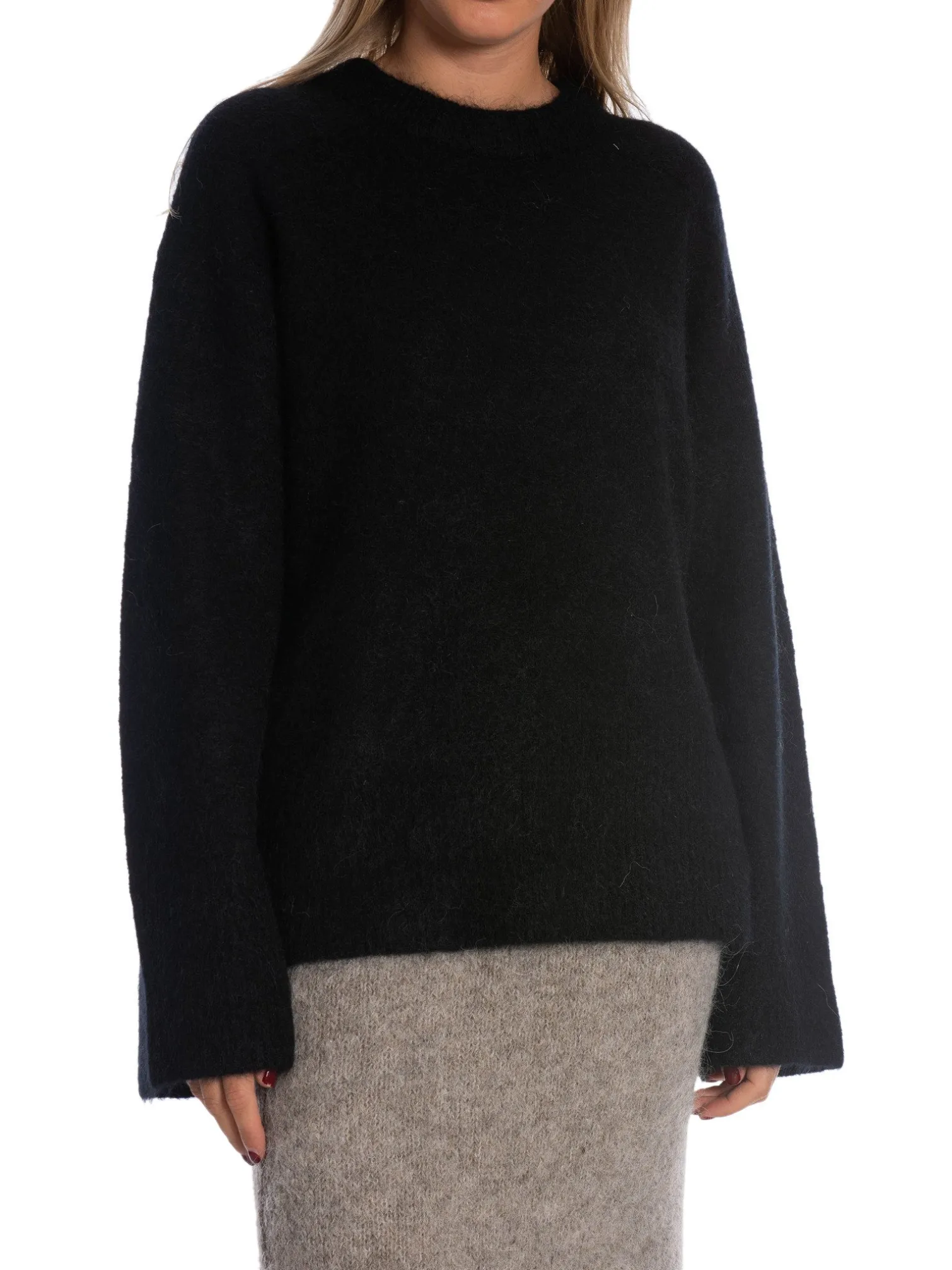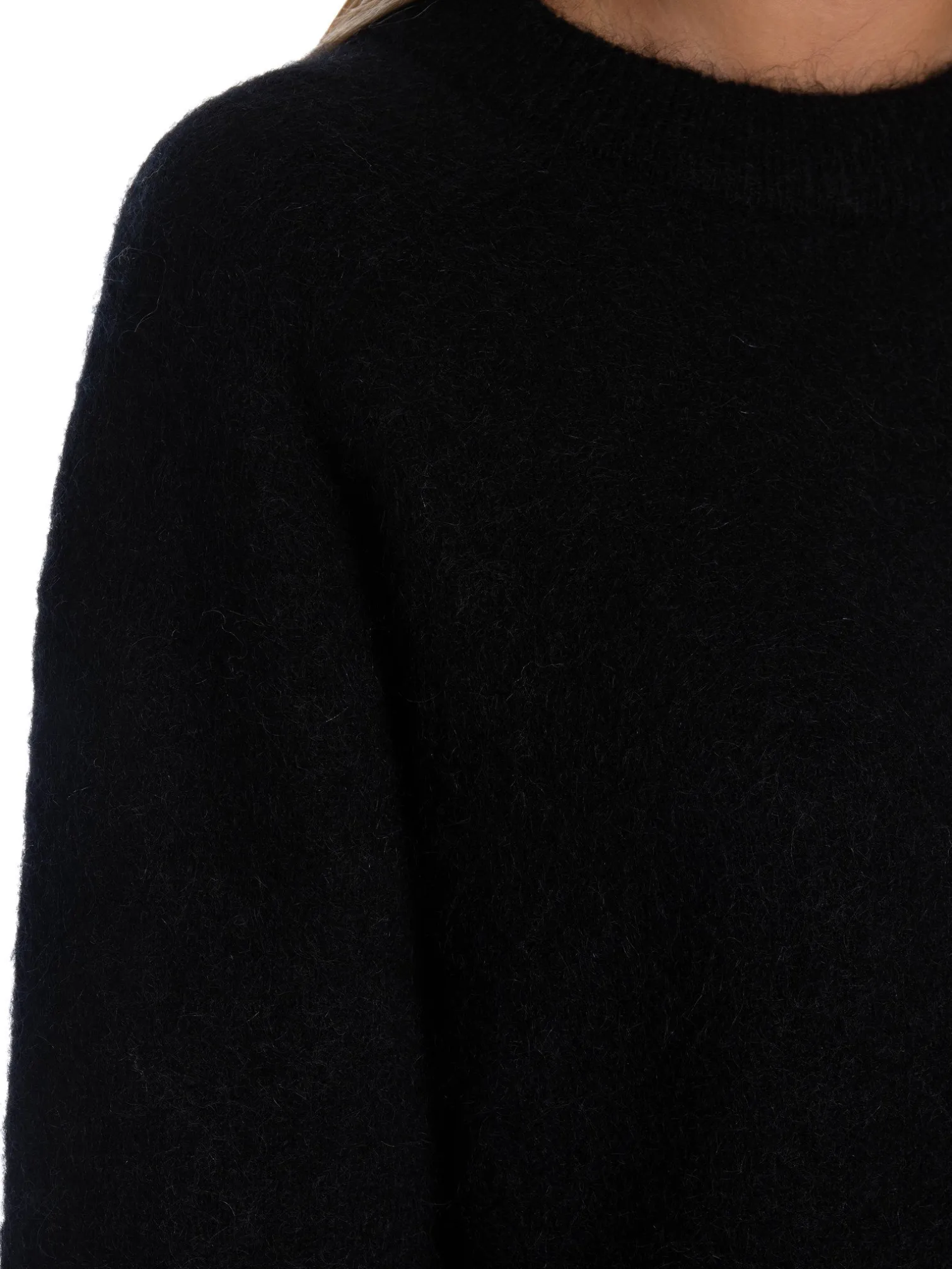 Brooklyn knit sweater from Second Female. A black knitted sweater in a wool and mohair blend. It is soft and comfortable in its boxy design. Match with a pair of jeans for an autumnal look!