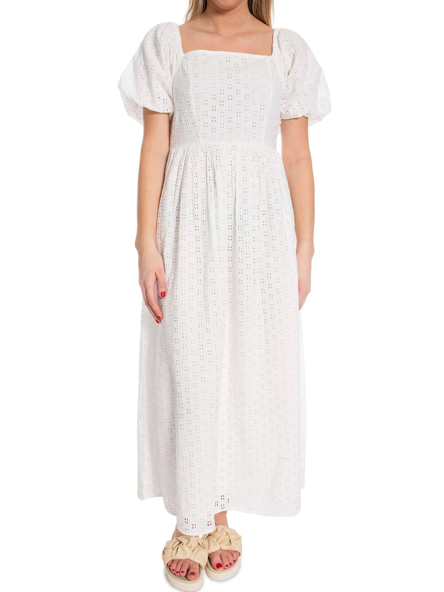 Dress Anelli from Selected Femme. A nice summer dress. Designed with short puff sleeves, square neckline with elastic. Nice to style with a pair of heels on a summer evening!
