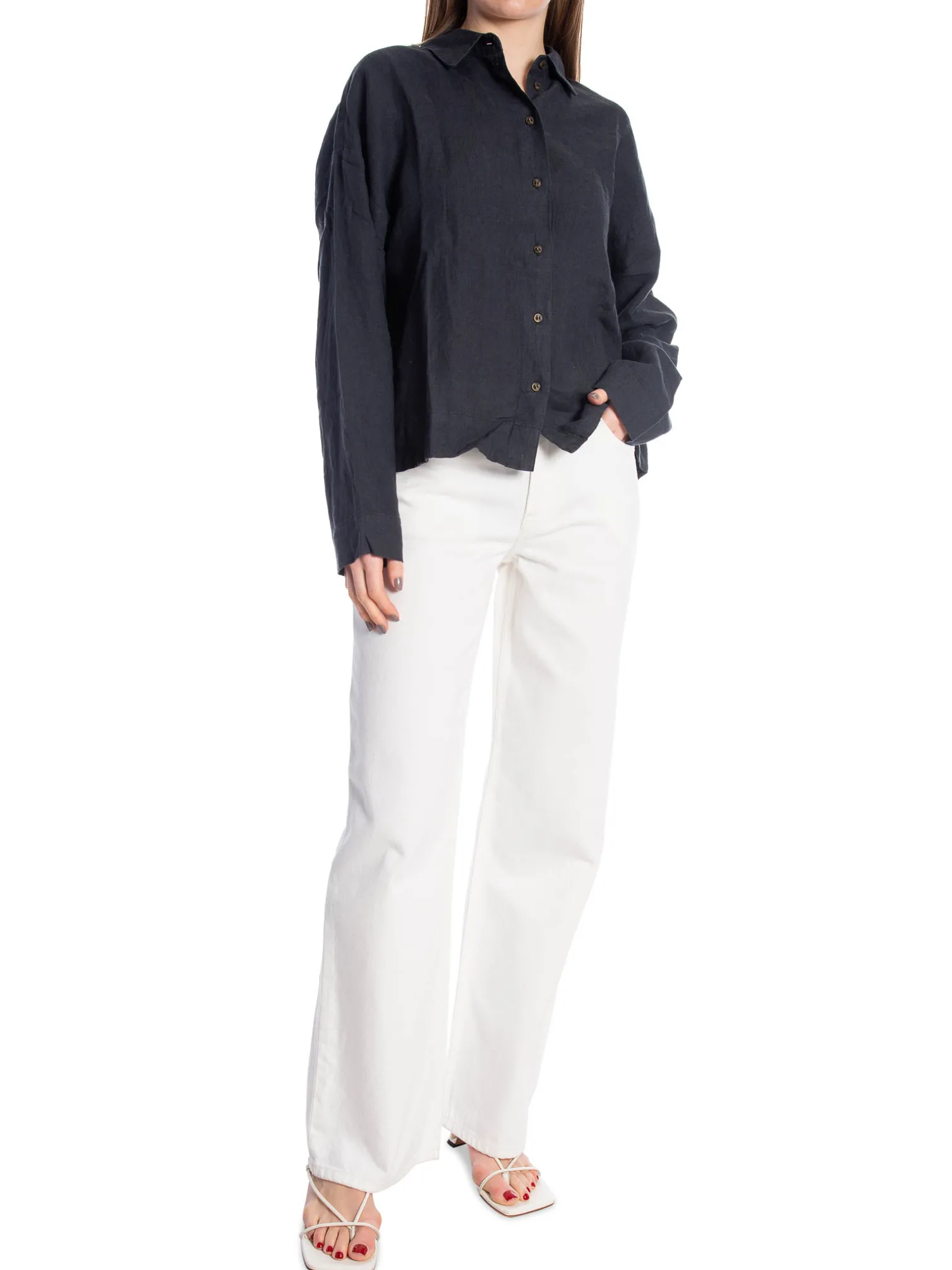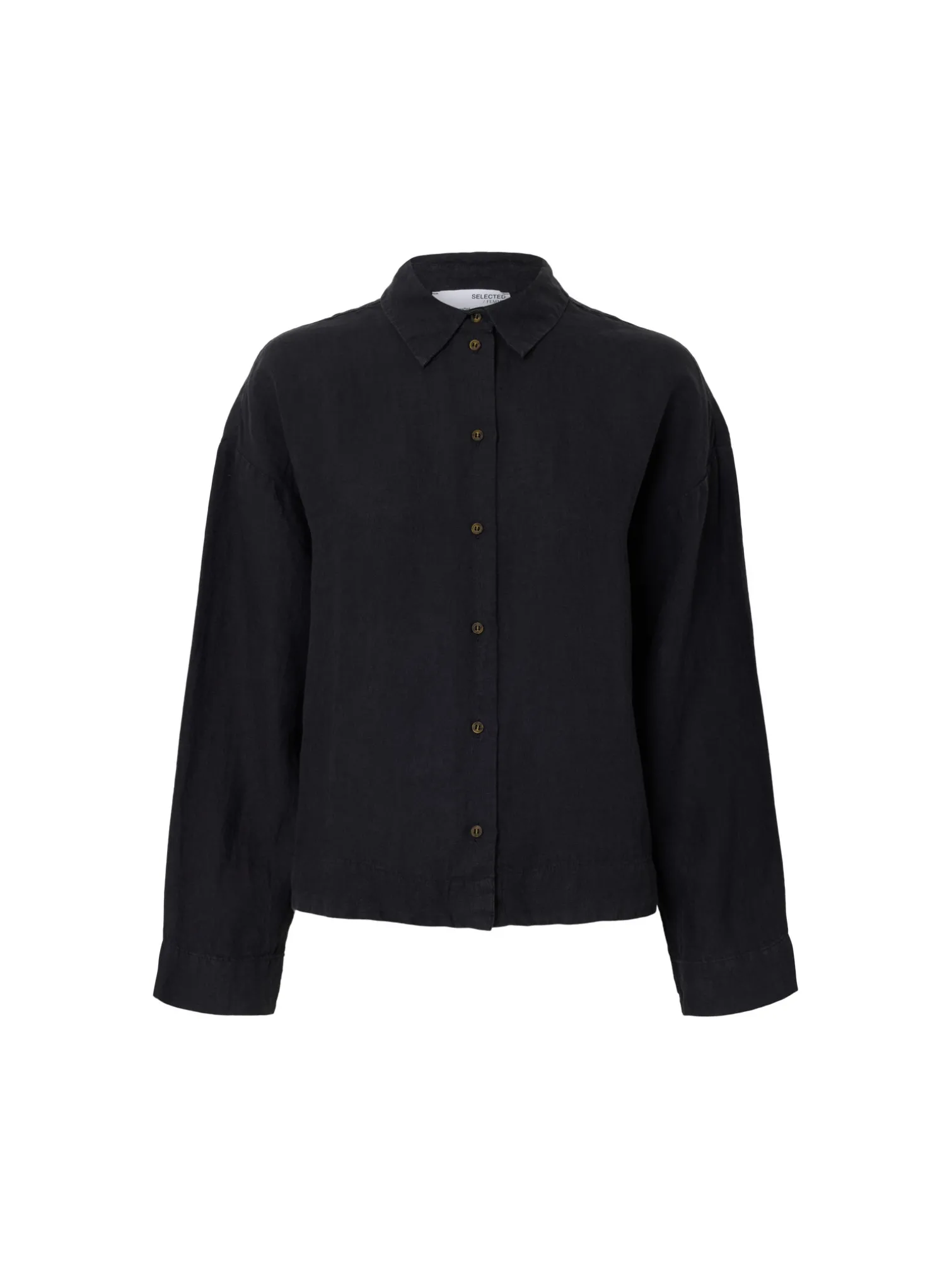 Skjorte Linnie fra Selected Femme. En lækker afslappet skjorte i delvist økologisk hør i en let croppet og boxy model. Lige så stilfuld at have på med en nederdel eller jakkesætsbukser!