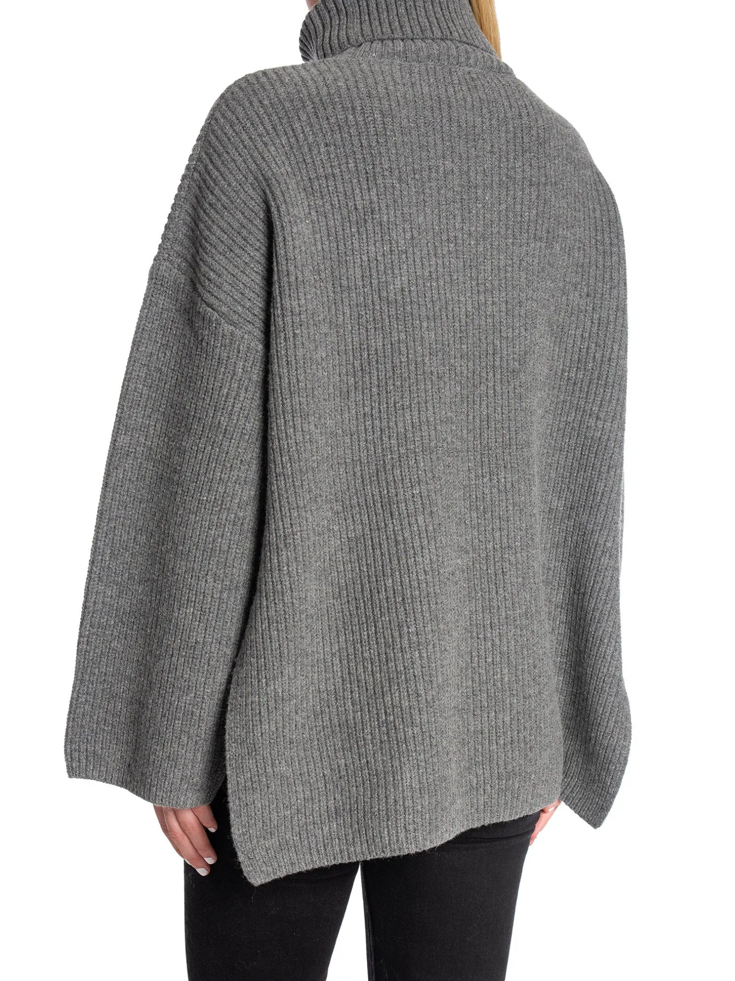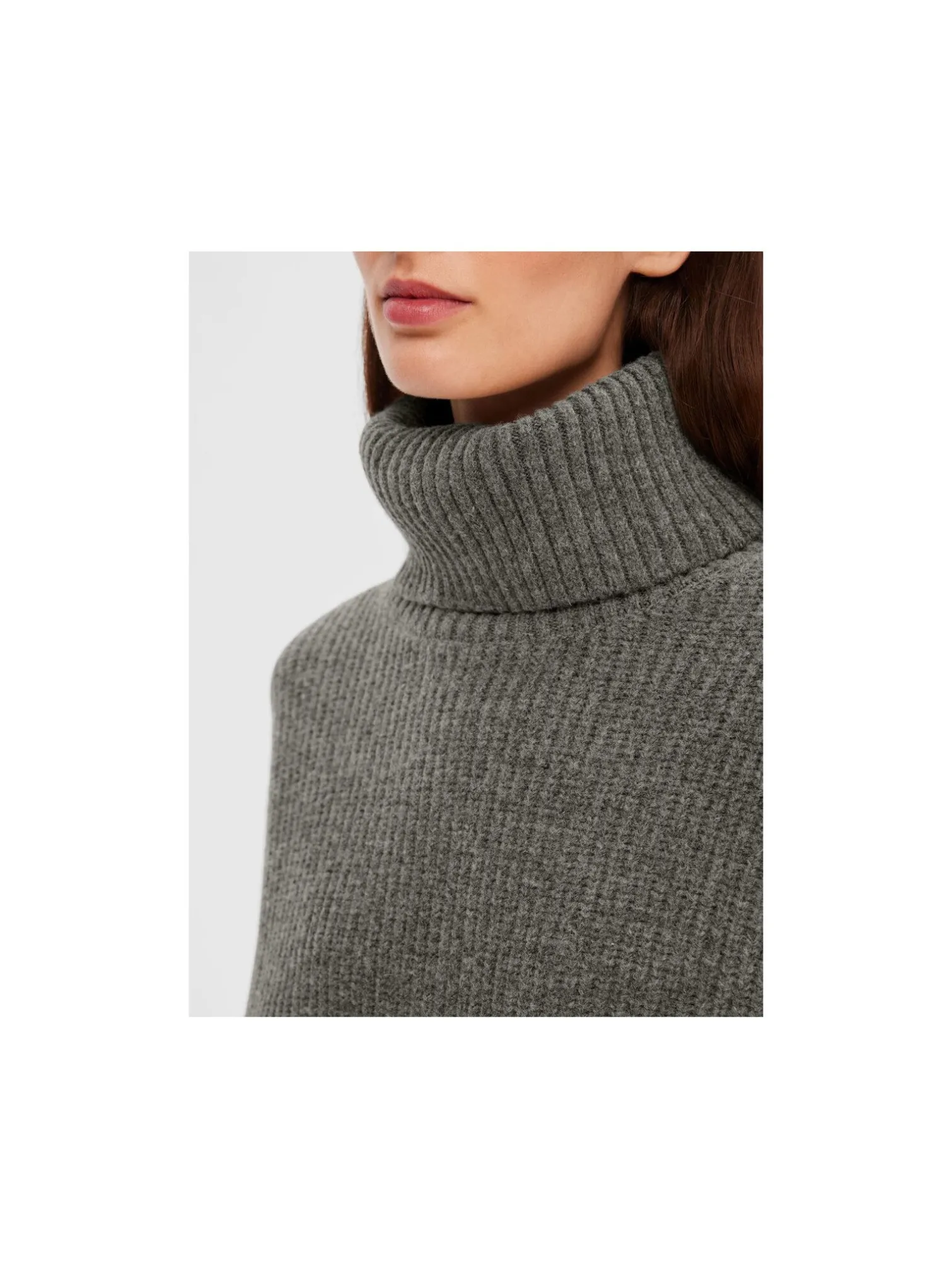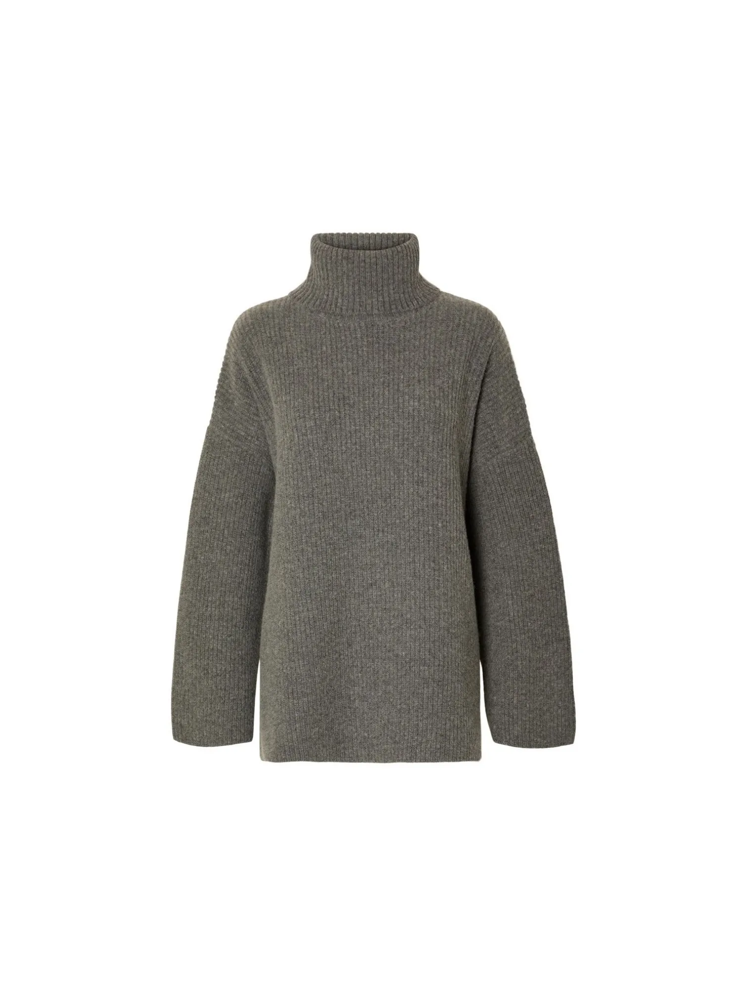 Sweater Mary from Selected Femme. A slighlty longer knitted sweater in a wool blend designed with a turtleneck and slits at the sides. The perfect knitted sweater!