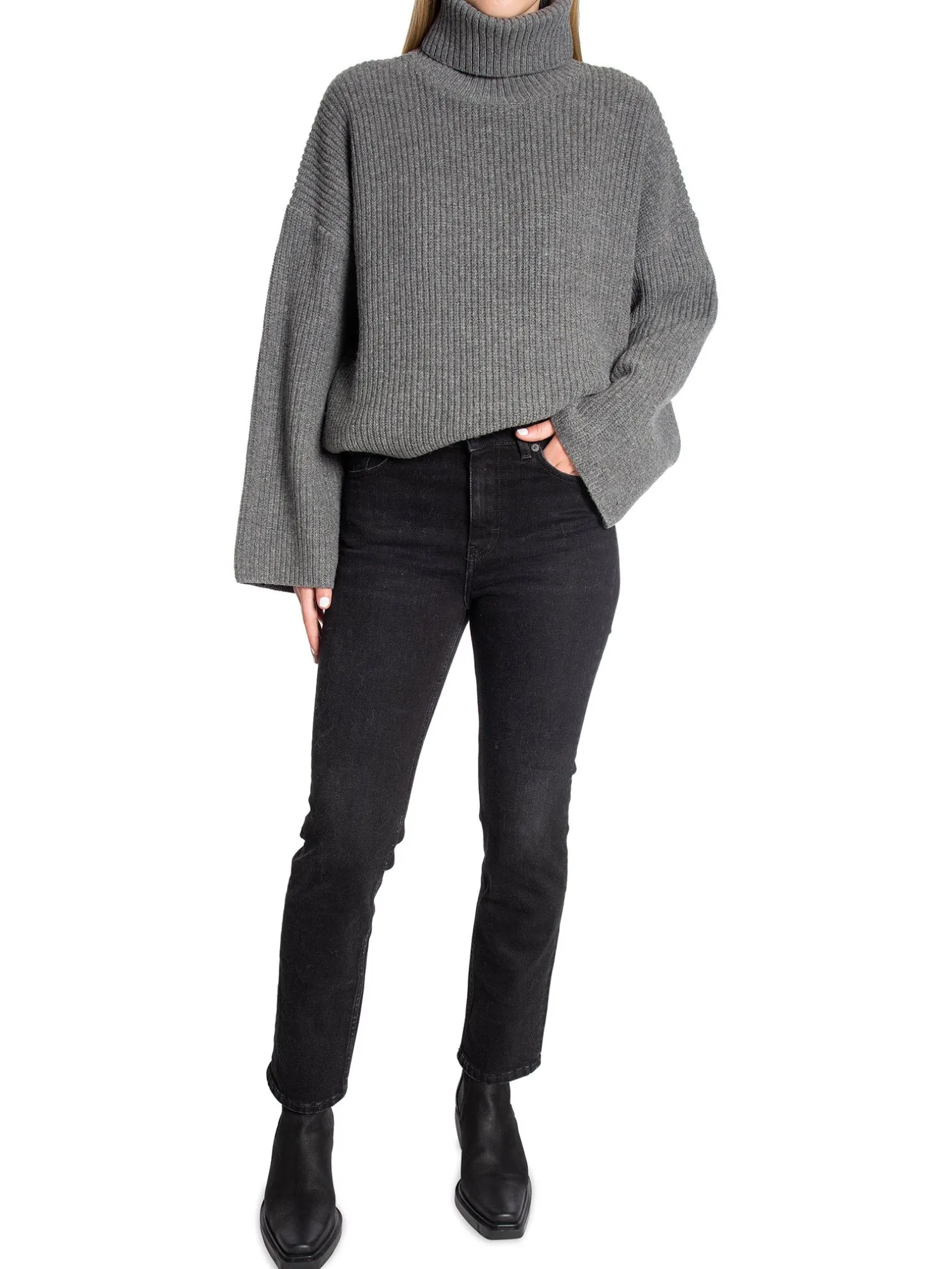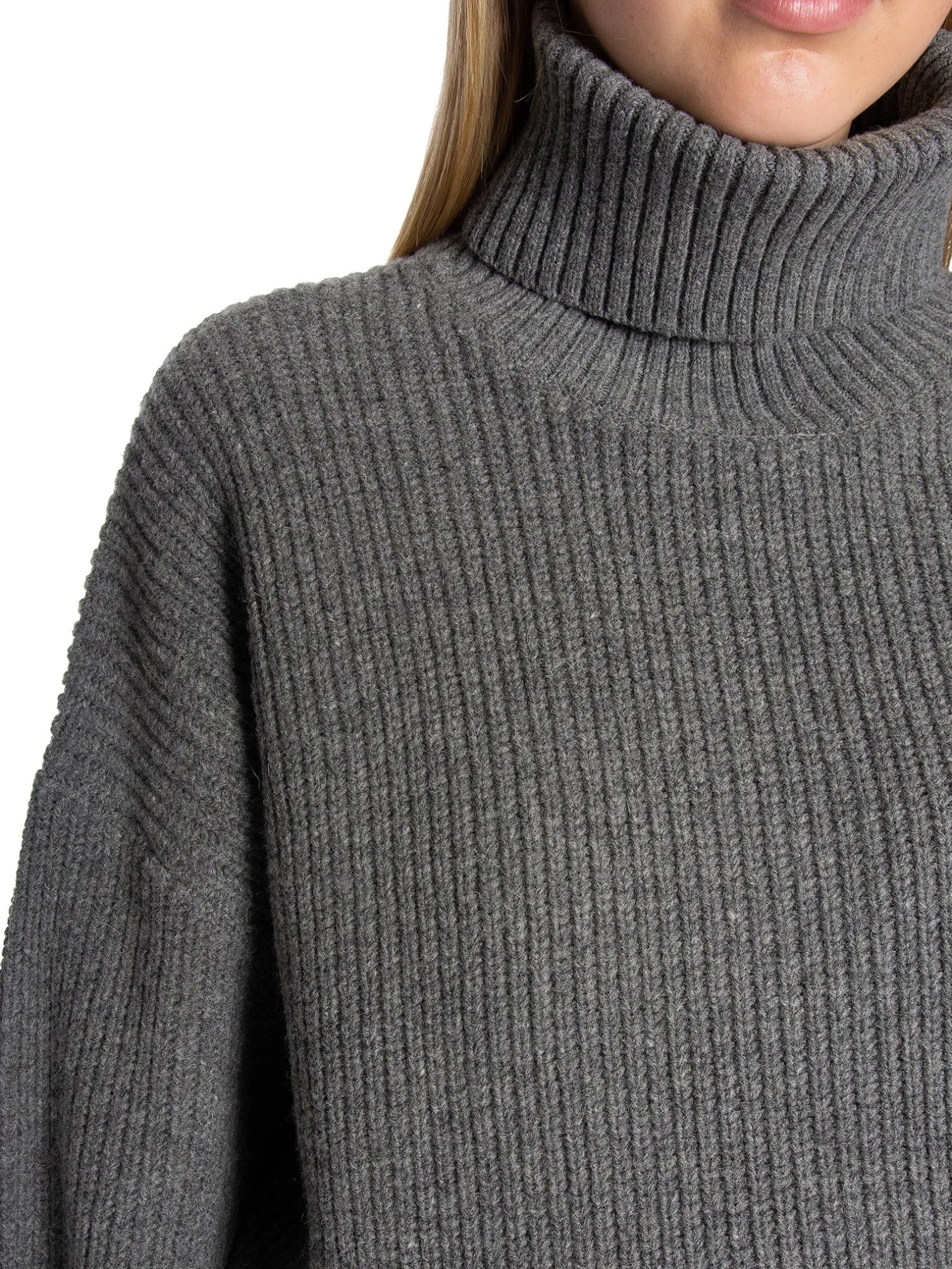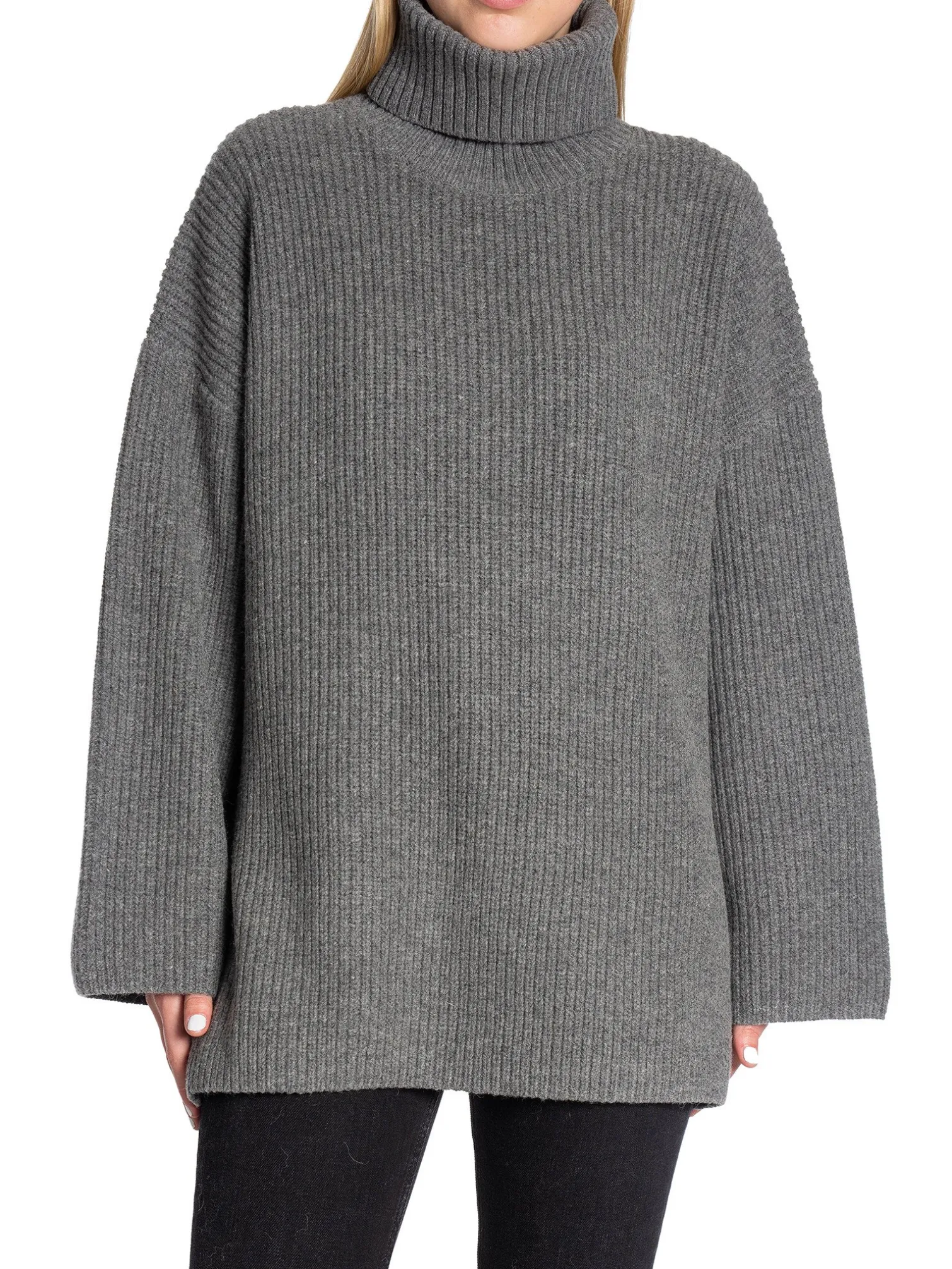 Sweater Mary from Selected Femme. A slighlty longer knitted sweater in a wool blend designed with a turtleneck and slits at the sides. The perfect knitted sweater!