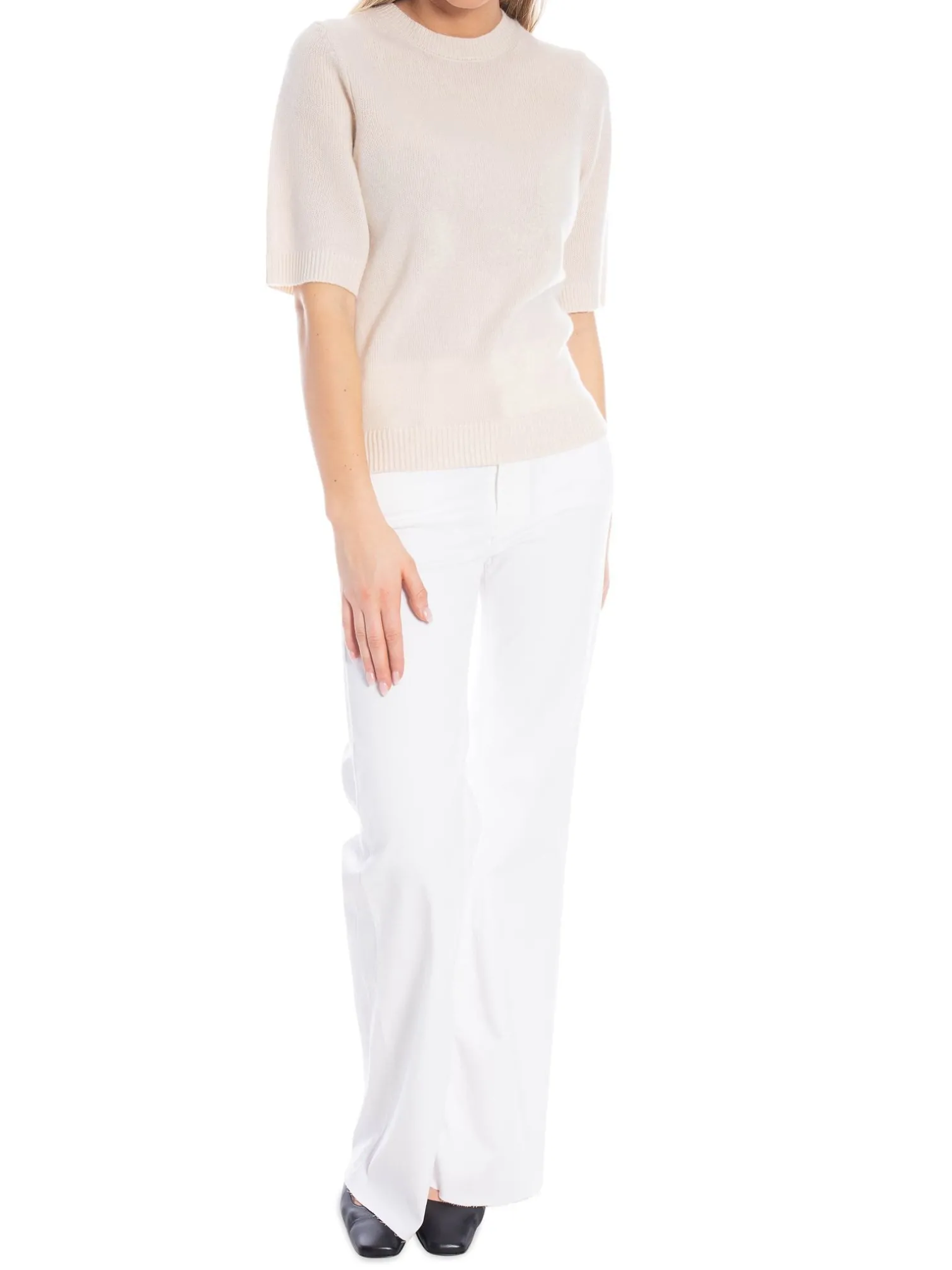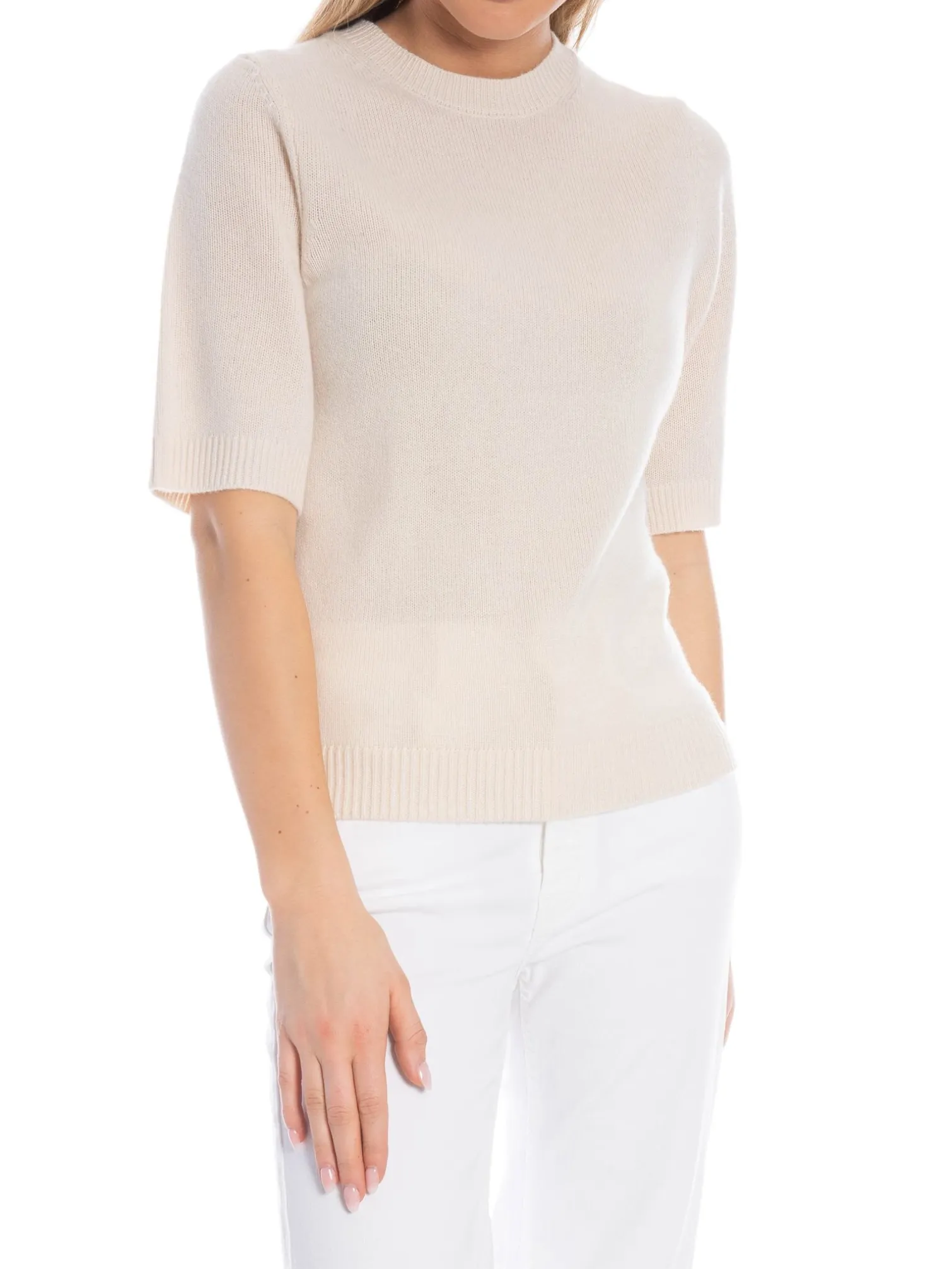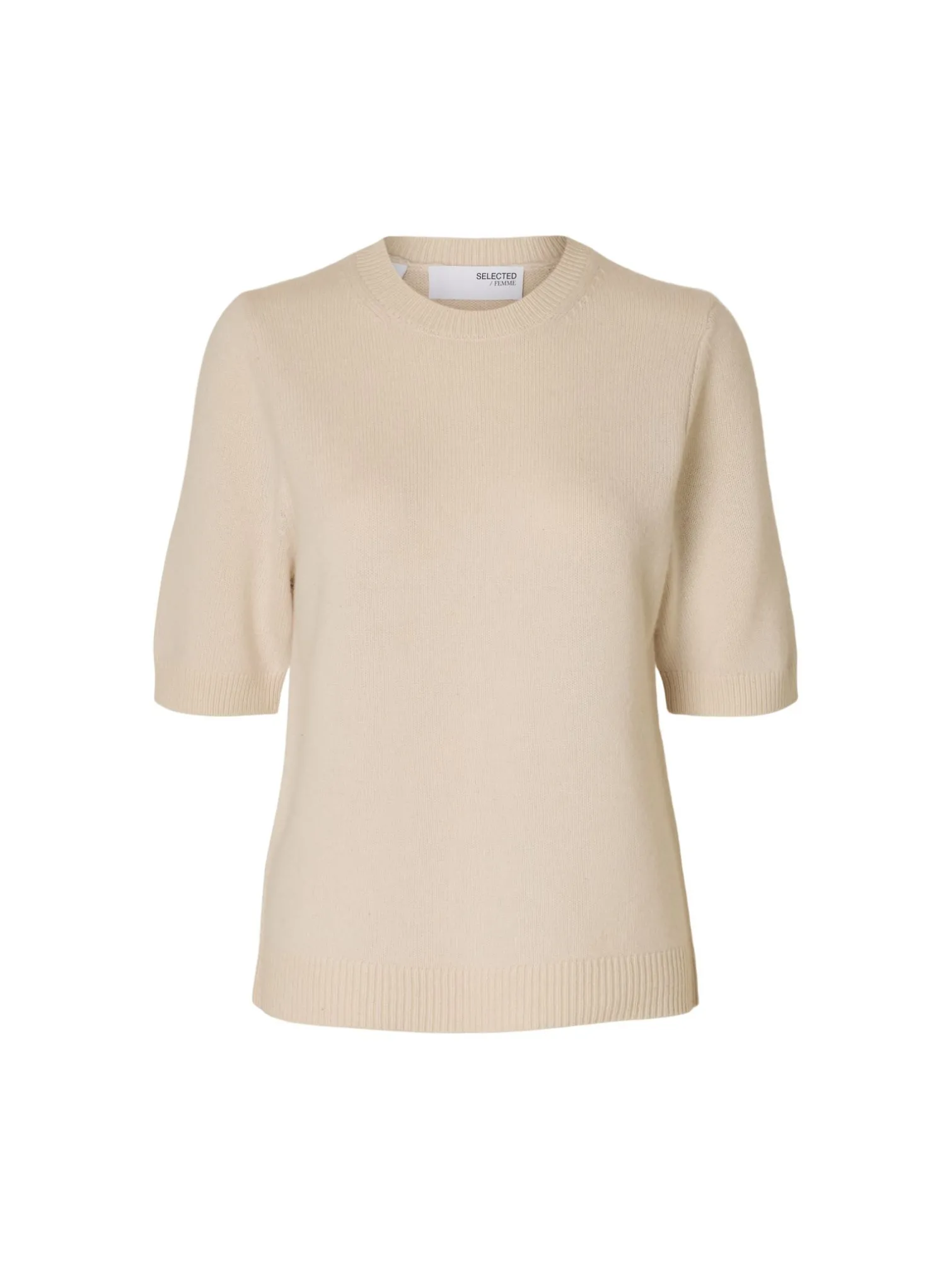 Top Cille from Selected Femme. A lovely and soft knit top in a cashmere and wool blend with shorter sleeves. Slightly relaxed fit and ribbed hems. Wear with a pair of jeans or a skirt.