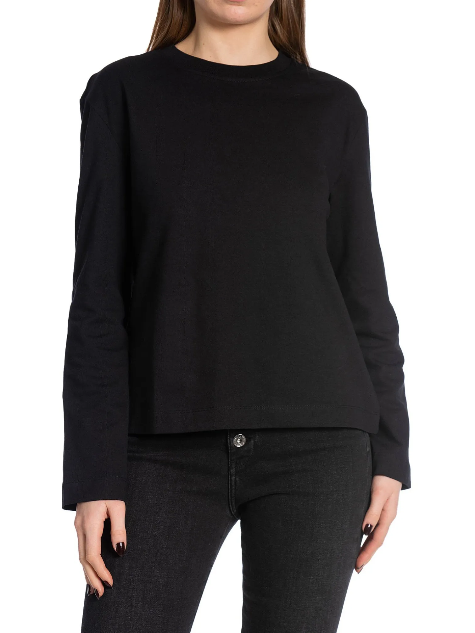 Top Essential LS Boxy from Selected Femme. Black long-sleeved top in a soft and durable material with a boxy fit. The perfect wardrobe staple that fits with everything!