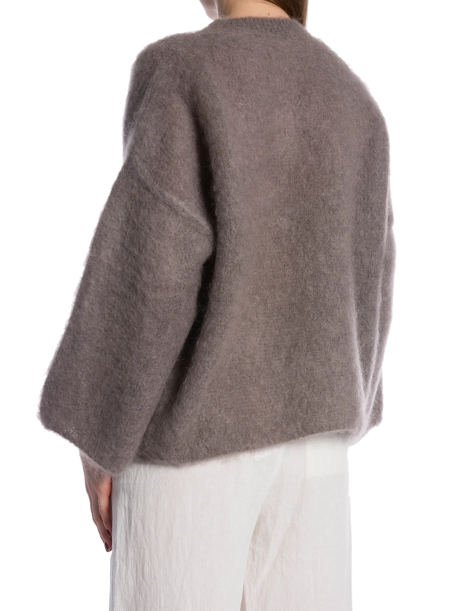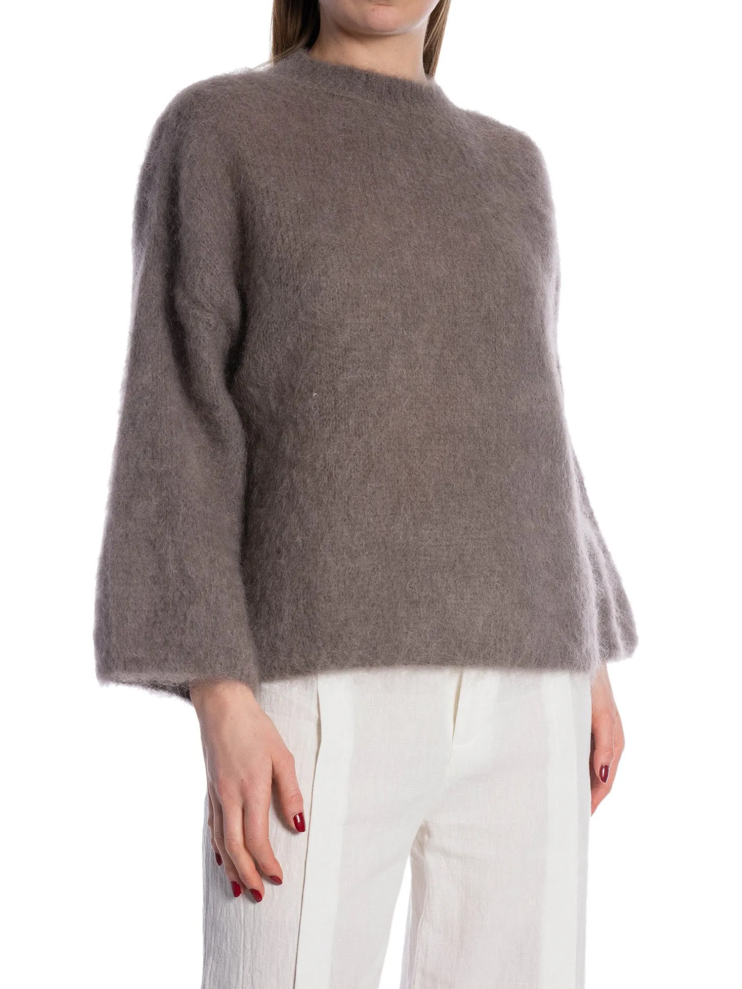 Mohair Manche 3/4 Sweater. A wide, knitted sweater in a loose fit and slightly shorter sleeves in a mohair blend. Style with a pair of leather pants for a modern look!