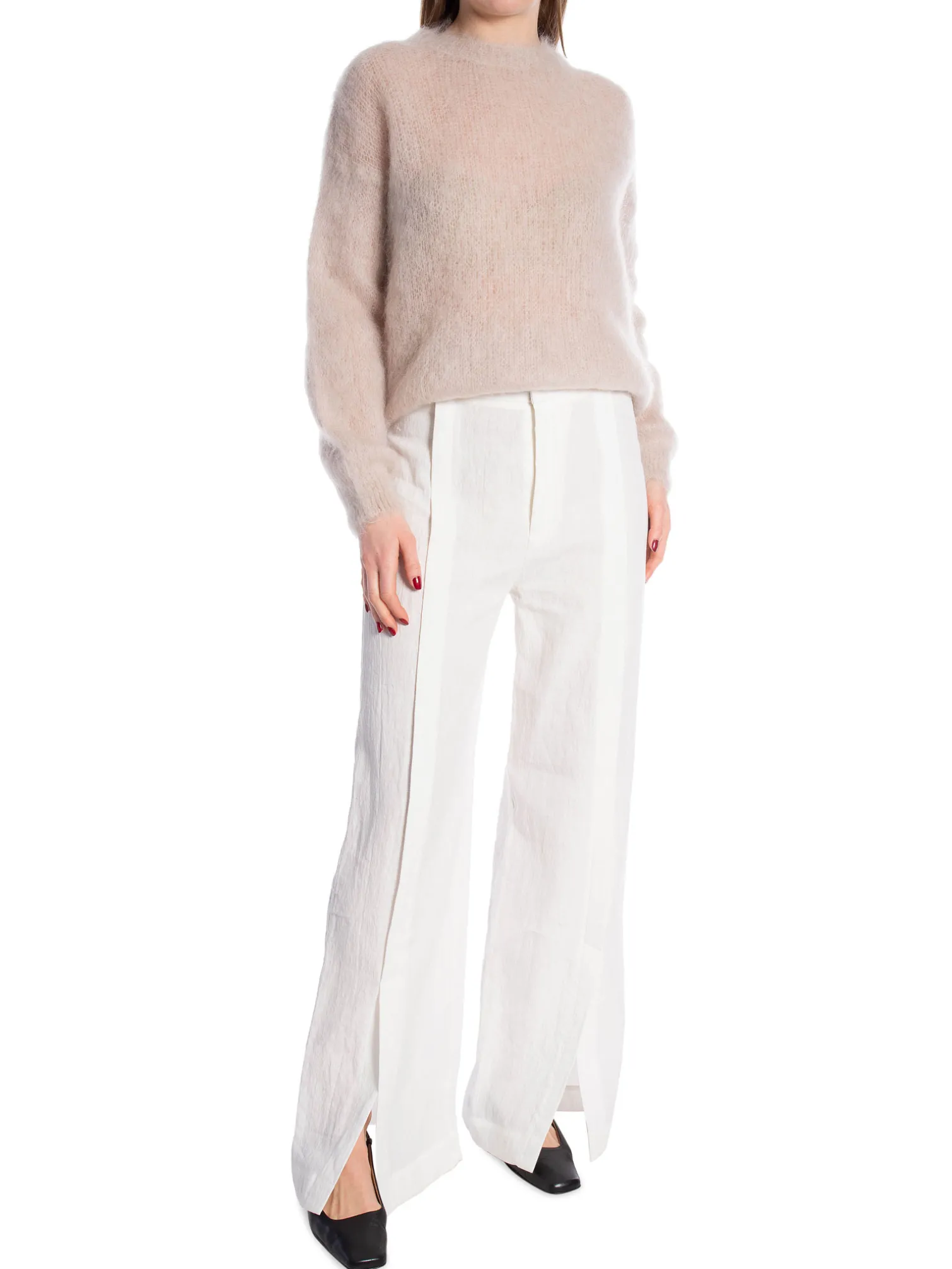 Sweater Mohair Taupe. A loose, loose-fitting knitted sweater in a mohair blend. Style with a pair of leather pants for a modern look!