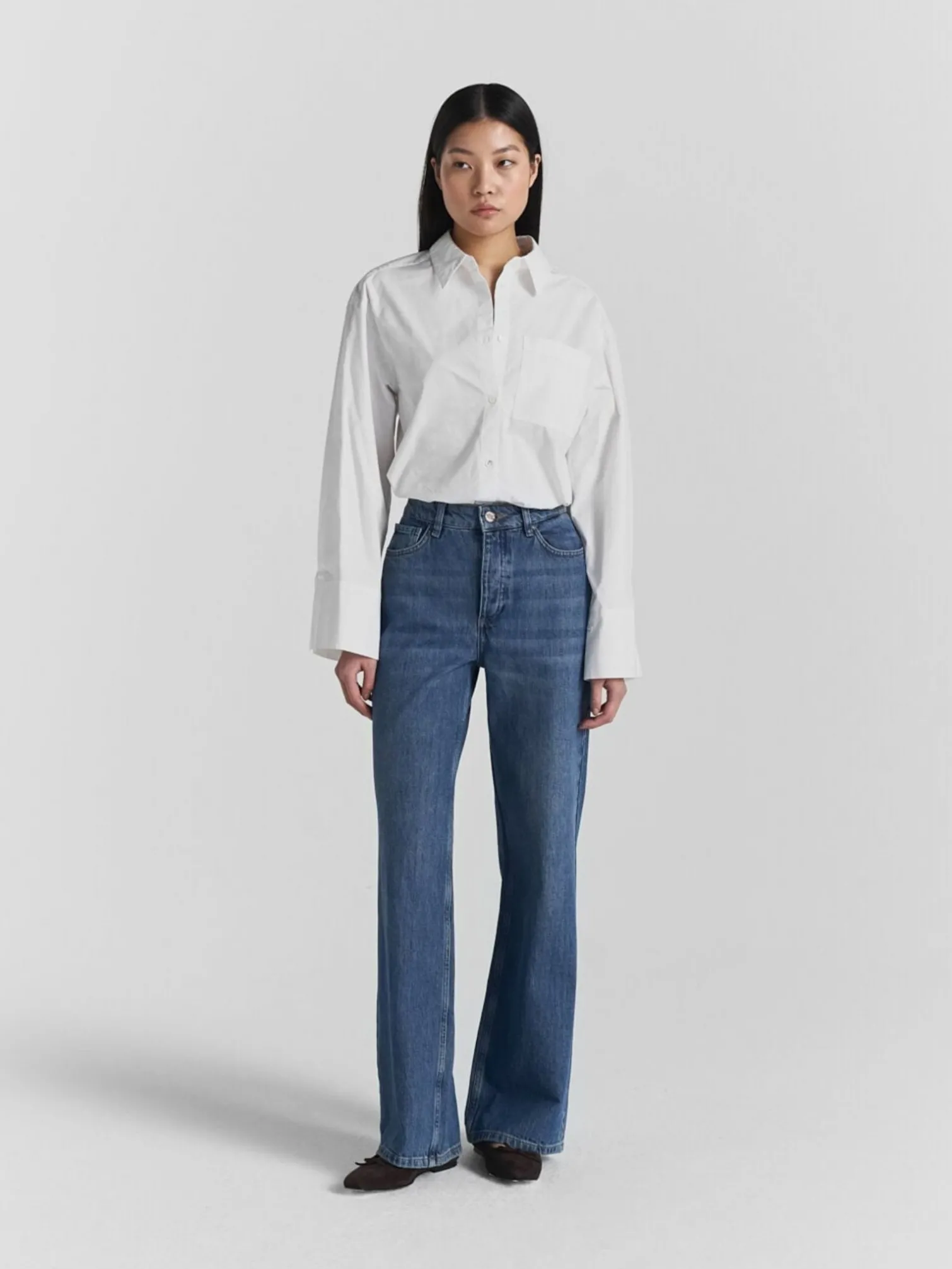 Jeans Tori Rigid from Twist & Tango. Classic jeans in a wider model with a high waist. It is designed in an innovative material – ISKO. The perfect denim wash makes the trousers go with most things!