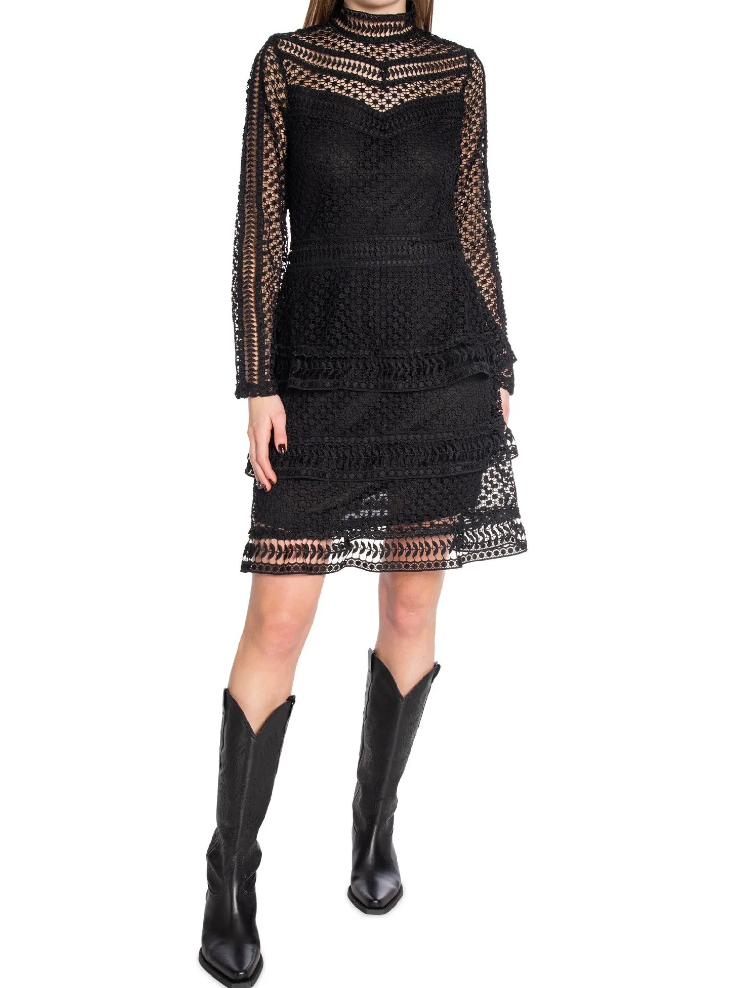Dress Alberta from Yas. A lovely dress designed with beautiful lace details. Closures with a zipper at the back. wear this wonderful dress with a pair of boots or heels for a festive look!