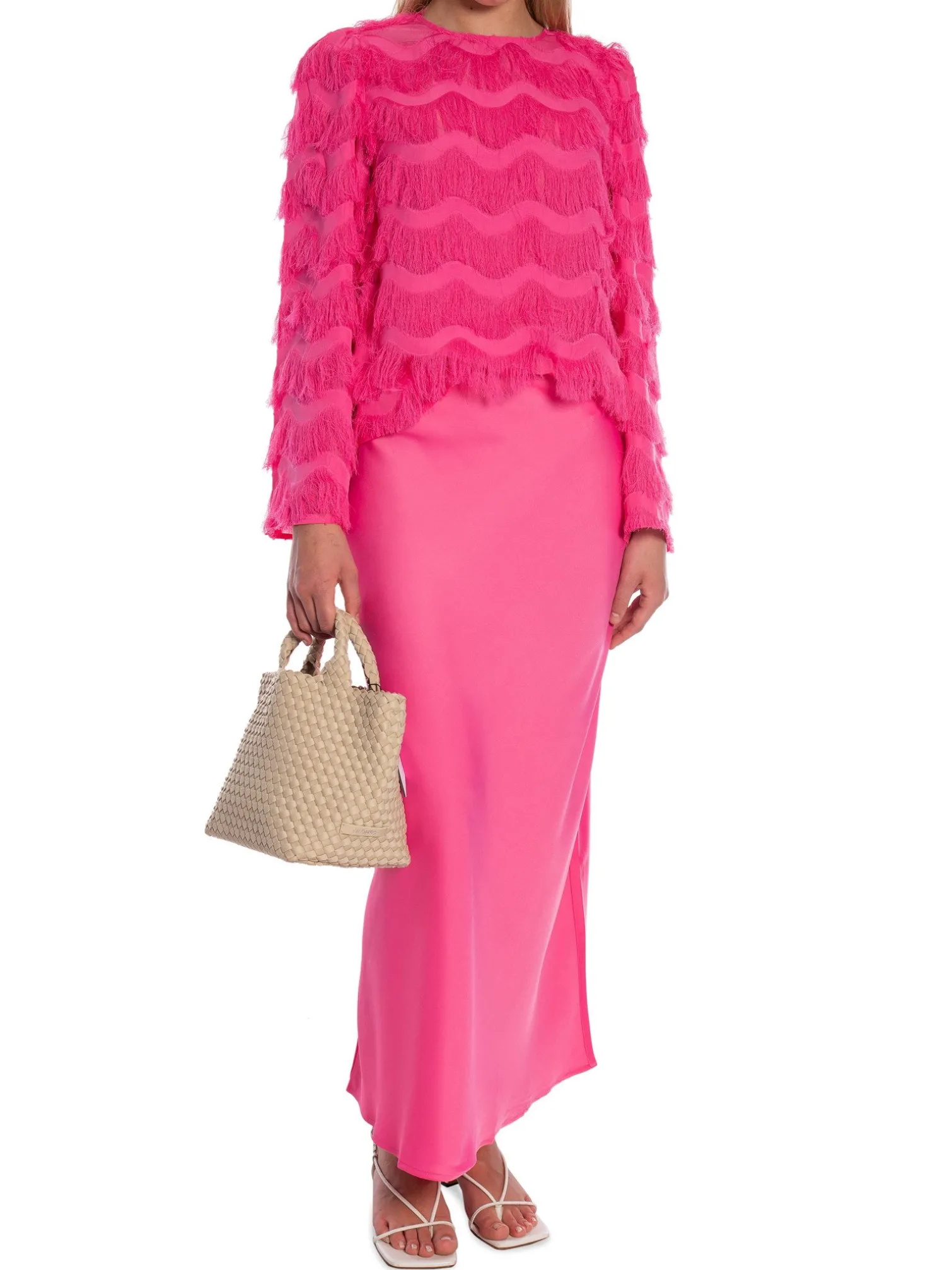 Blouse Yasria Ls from Y.A.S. A festive top with fine fringe details. Designed with a round neckline, button keyhole closure and long sleeves. Regular fit. Style together with the skirt “Yasdottea” for a perfect look for the summer festivities!