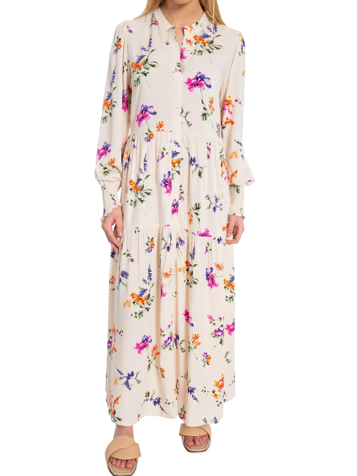 Dress Yasasina LS Long from Y.A.S. A lovely floral maxi dress. Designed with hidden buttons at the front and long sleeves with elasticated cuffs.