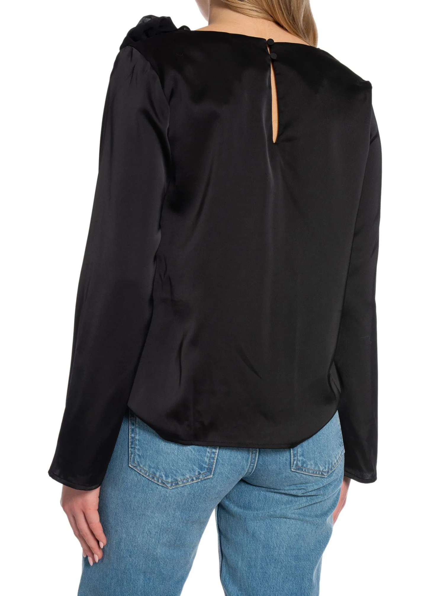 Top Yaselmiro from YAS. A lovely top in satin with decorative roses. The perfect party top for the seasons party occasions!