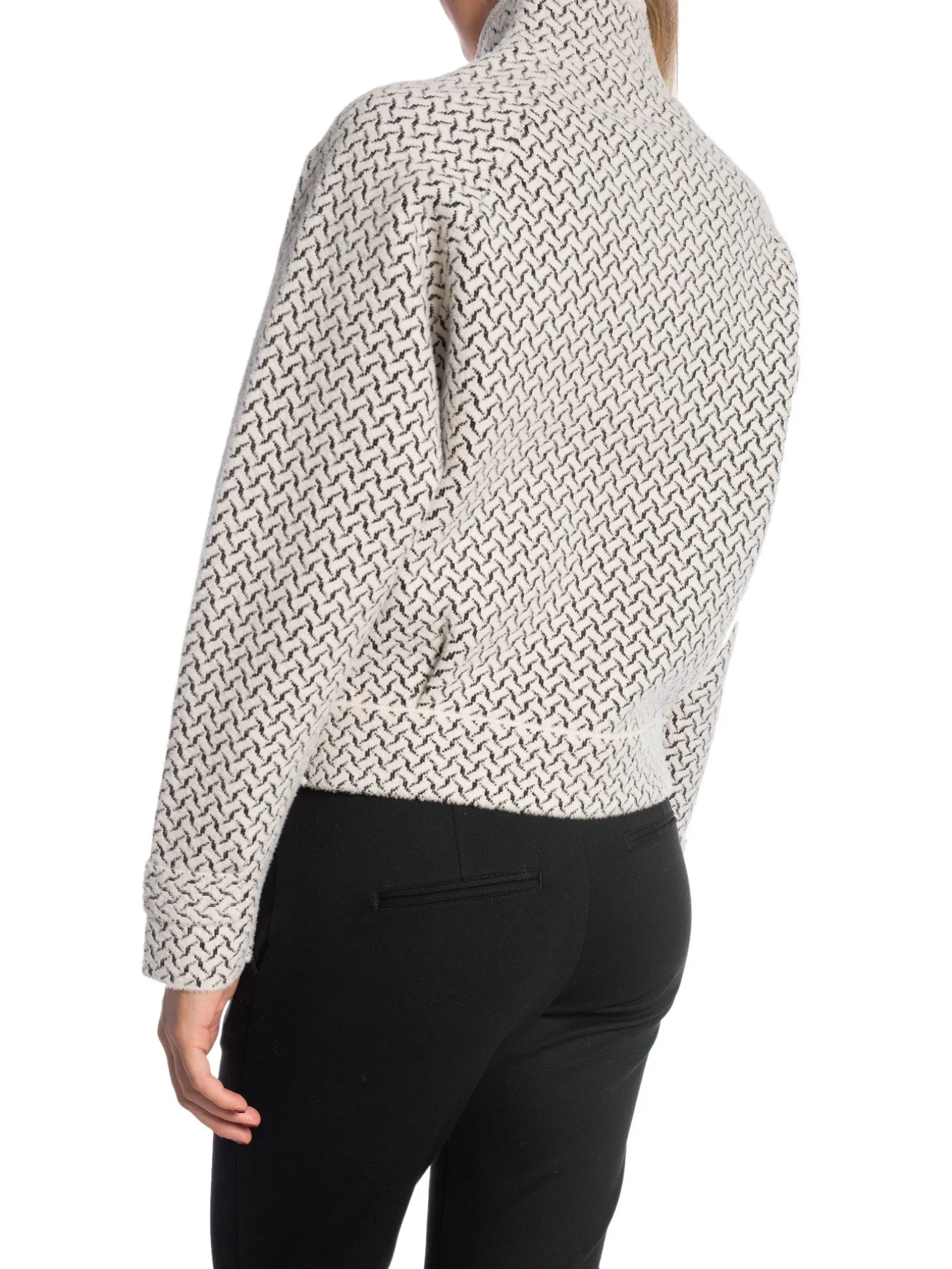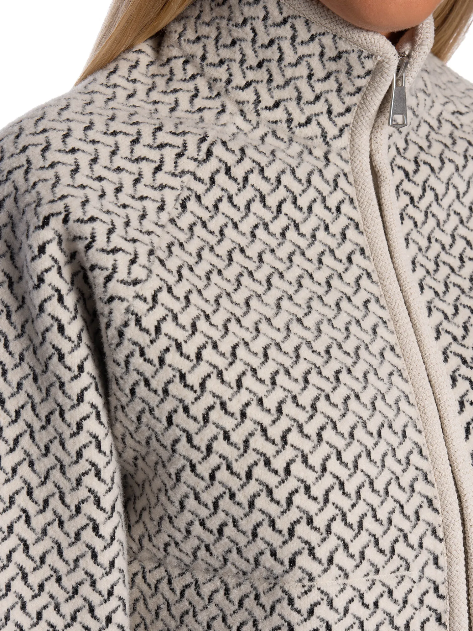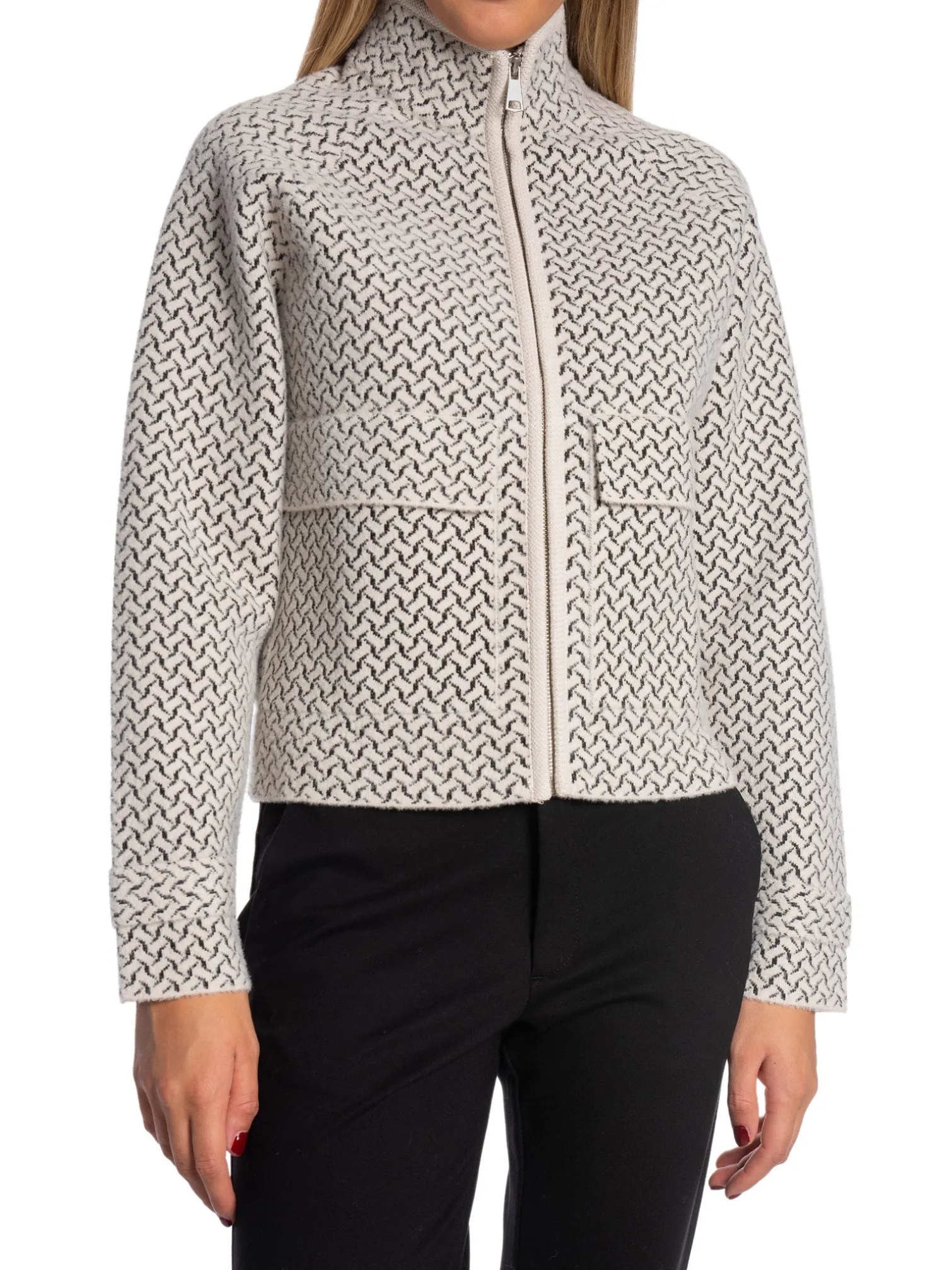 Sweater Knitted Print White Pock by YaYa. A thicker sweater with a zipper, a higher collar and two large pockets. Works perfectly as a jacket during the transition period between seasons!