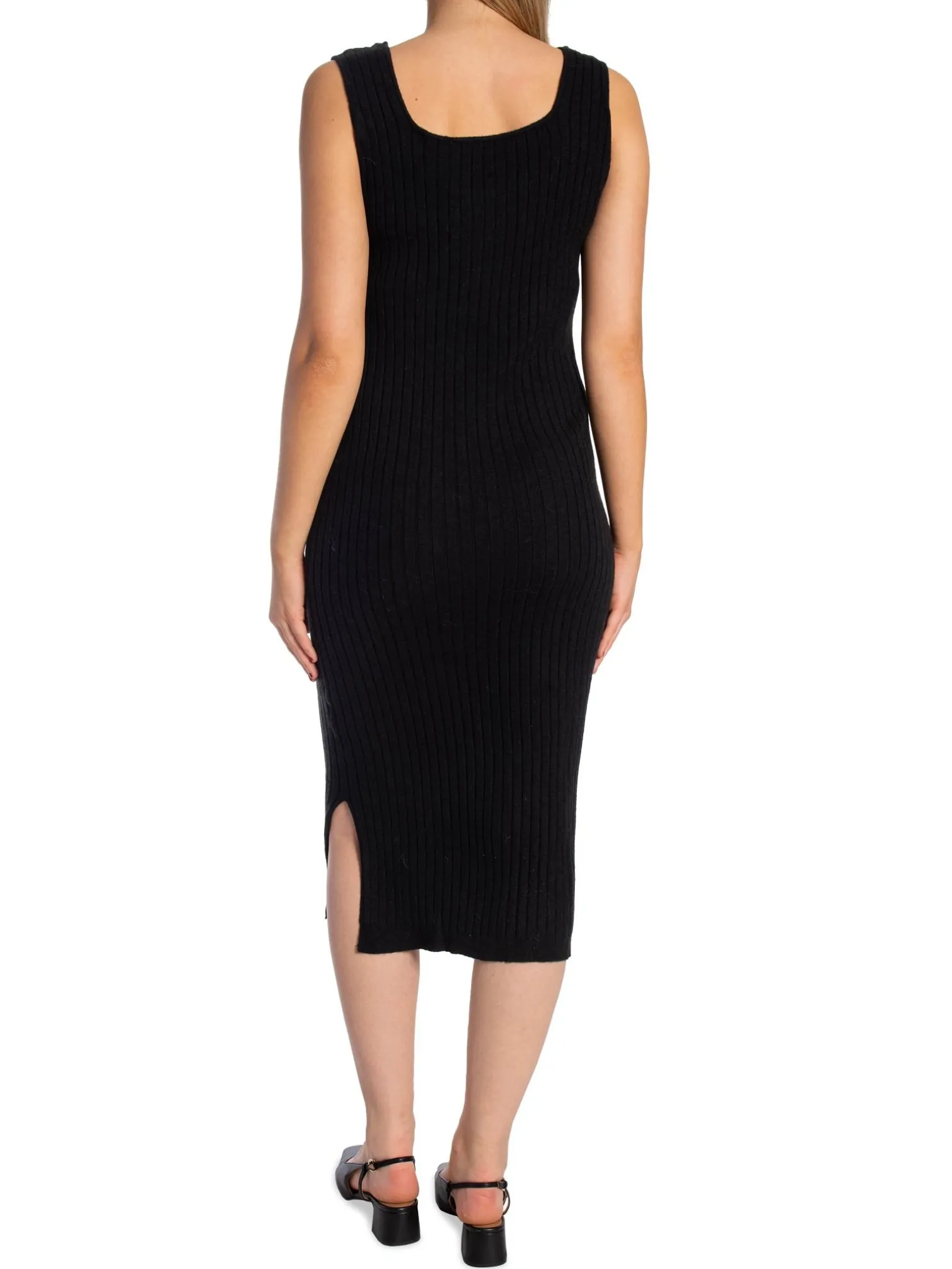 Dress Knitted from Yaya. A ribbed midi-length dress with a figure-hugging fit and wide shoulder straps.